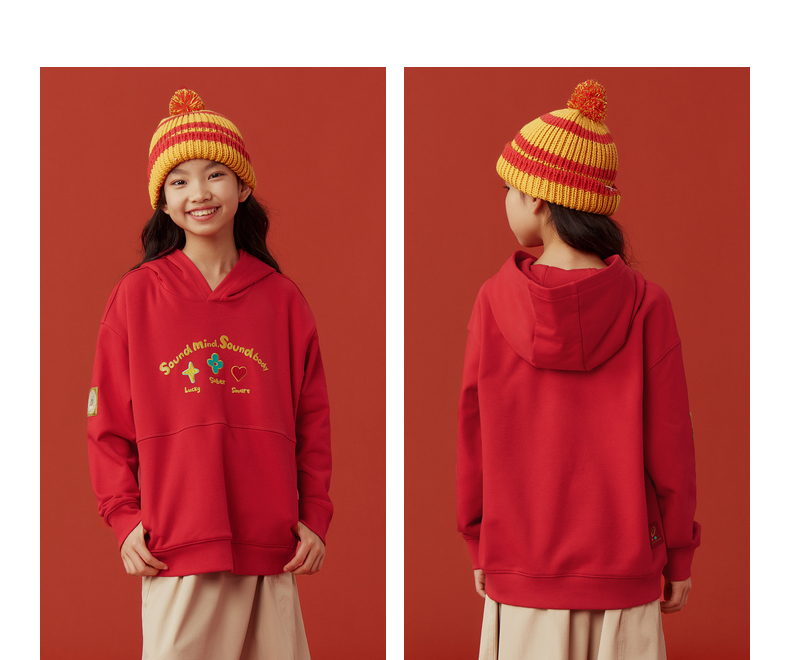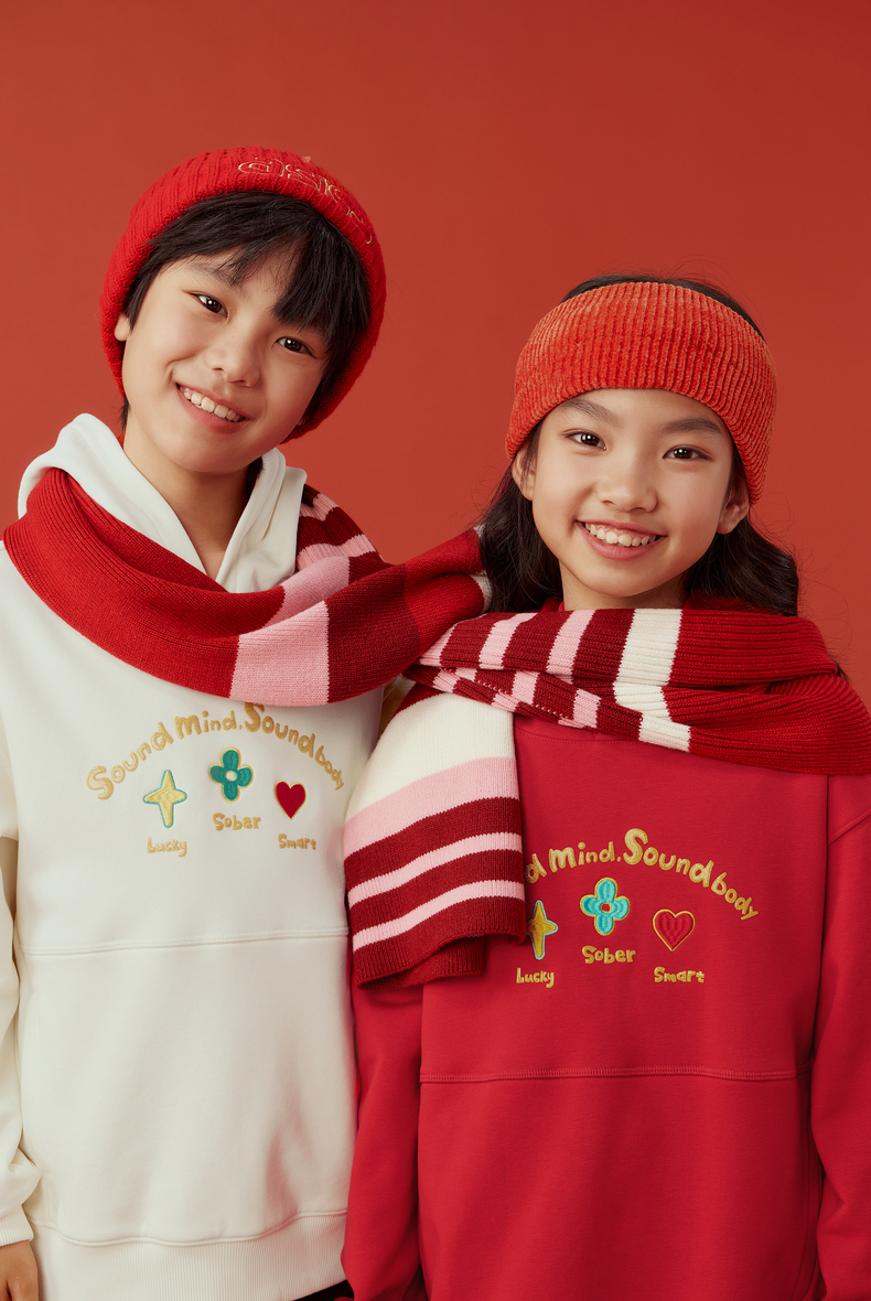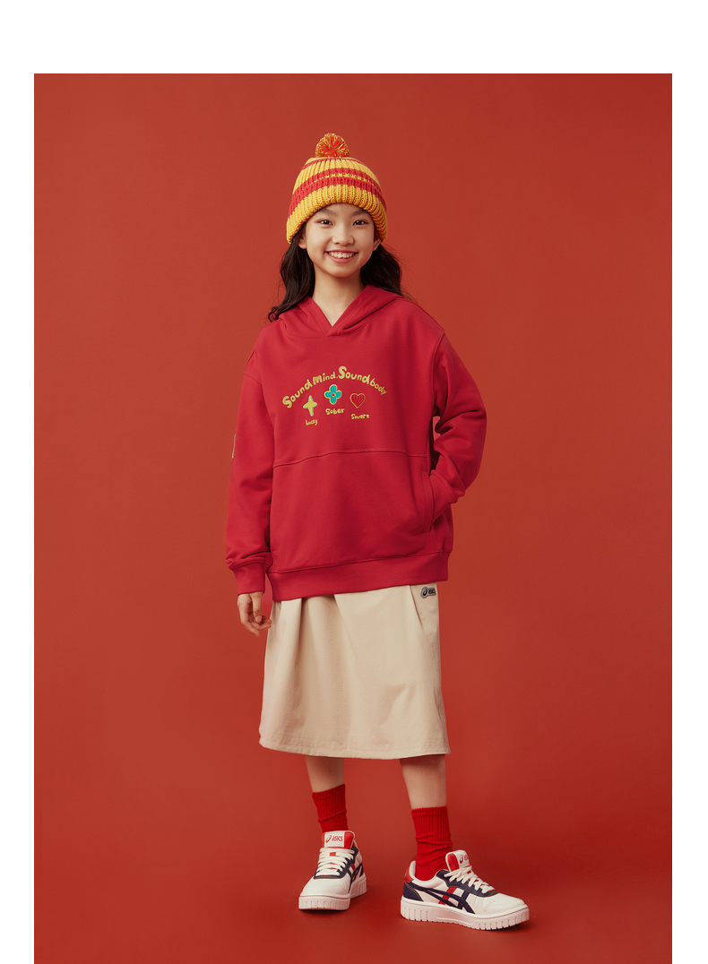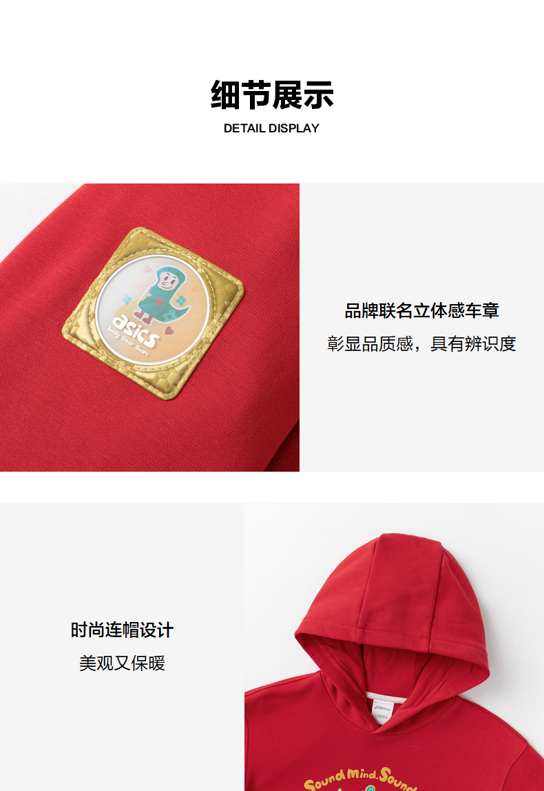 【新年限定】Asics/亚瑟士童装红色卫衣新年图案拜年外出春季T恤