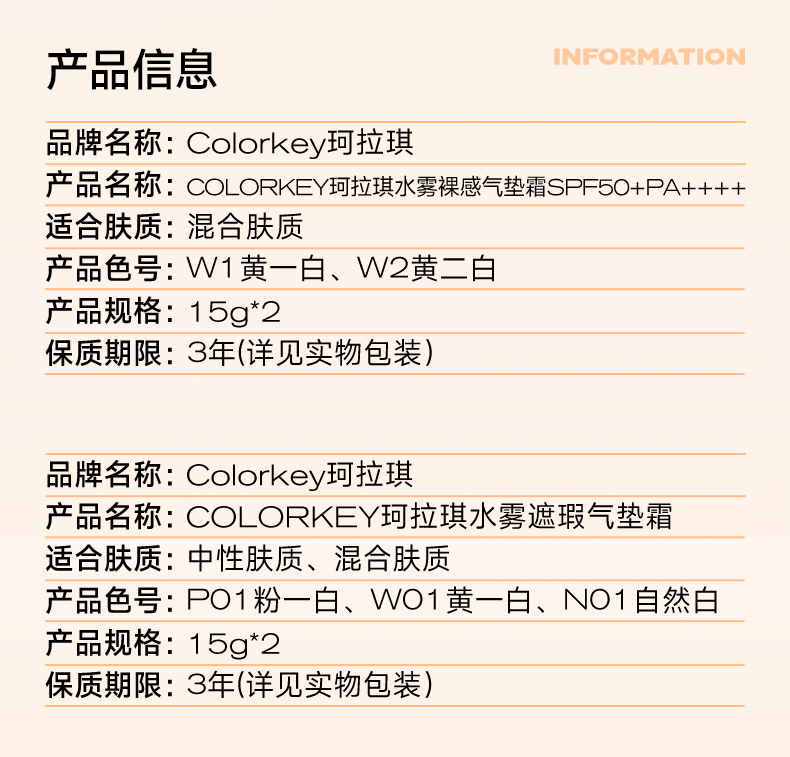 【日常专享 129元/件起】Colorkey珂拉琪小滤镜气垫控油轻薄遮瑕持久不脱妆BB霜