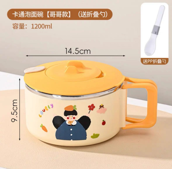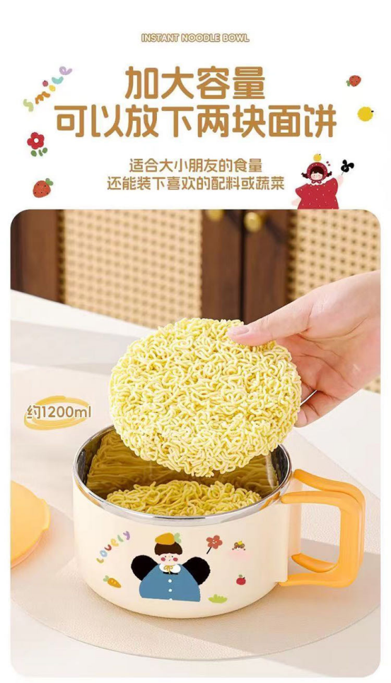 ✅ 超大容量 卡通泡面碗:1200ml 方形泡面碗:1500ml 轻松装下整块面饼+丰富配料+浓郁汤汁 其他大小食物也能轻松装下