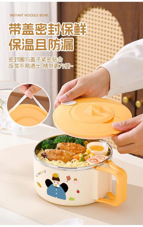 这是一款高品质304不锈钢泡面碗 甩市面上的普通饭盒三千八百条街! 又是方便又健康! 里面的不锈钢内胆很容易清洗的,盖子里的密封胶圈密封功能杠杠的! 可以泡泡面,可以装汤也可以带饭菜~ 让你的一日三餐都充满仪式感!