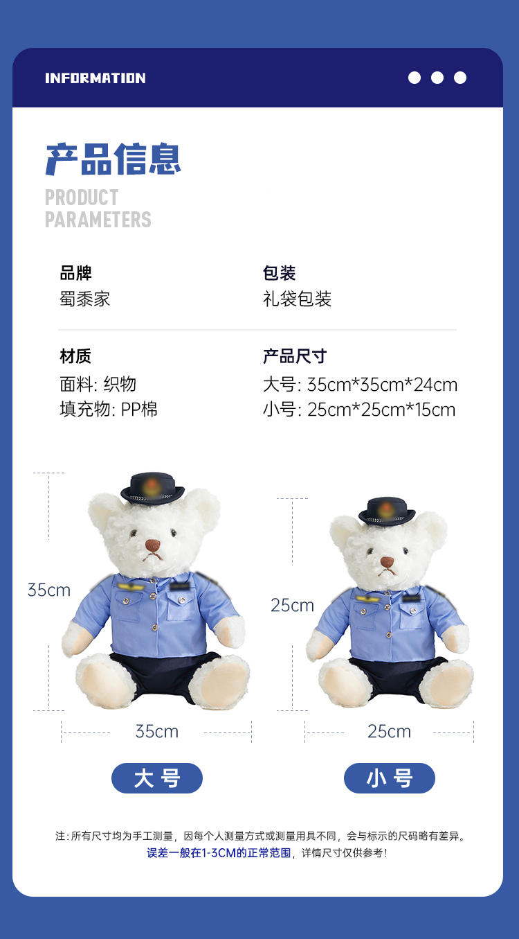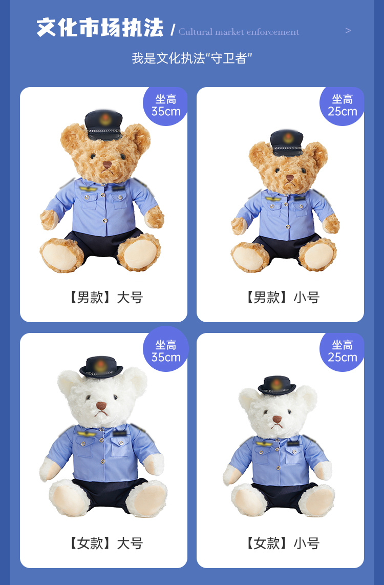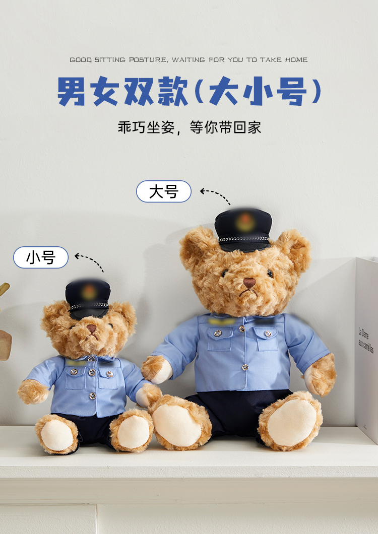 【综合执法熊】创意坐姿小熊毛绒公仔儿童玩偶摆件