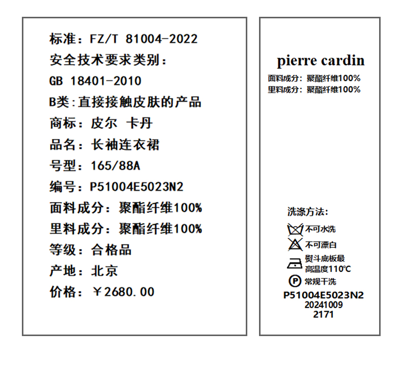 皮尔卡丹女装百搭通勤刺绣V领长袖连衣裙P0427DL20B0