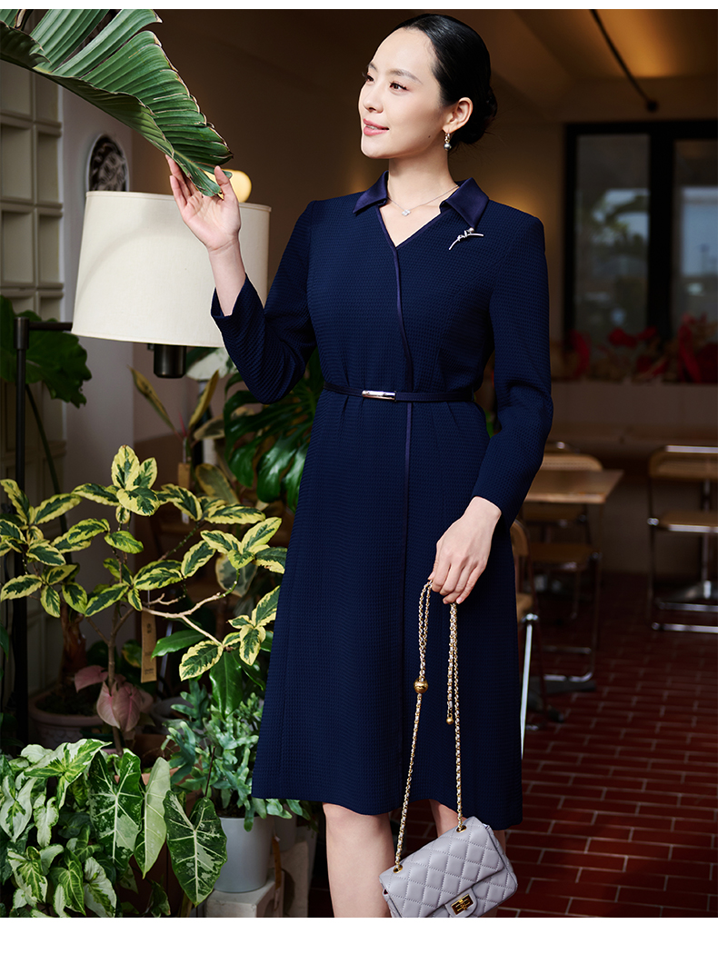 成熟、稳重、高贵典雅、大方得体 融合东方文化的含蓄和法国的浪漫 将创意的艺术性与消费需求相结合 为自信女性塑造高品质场合服装