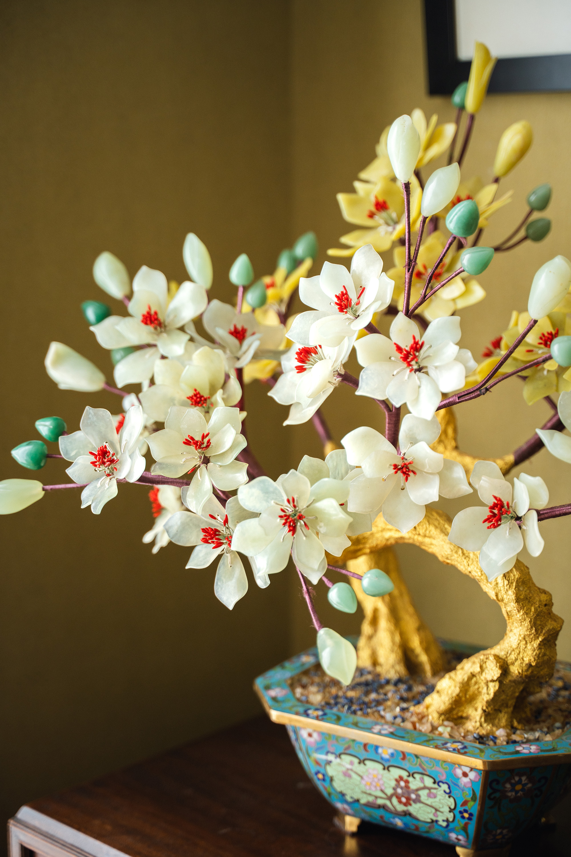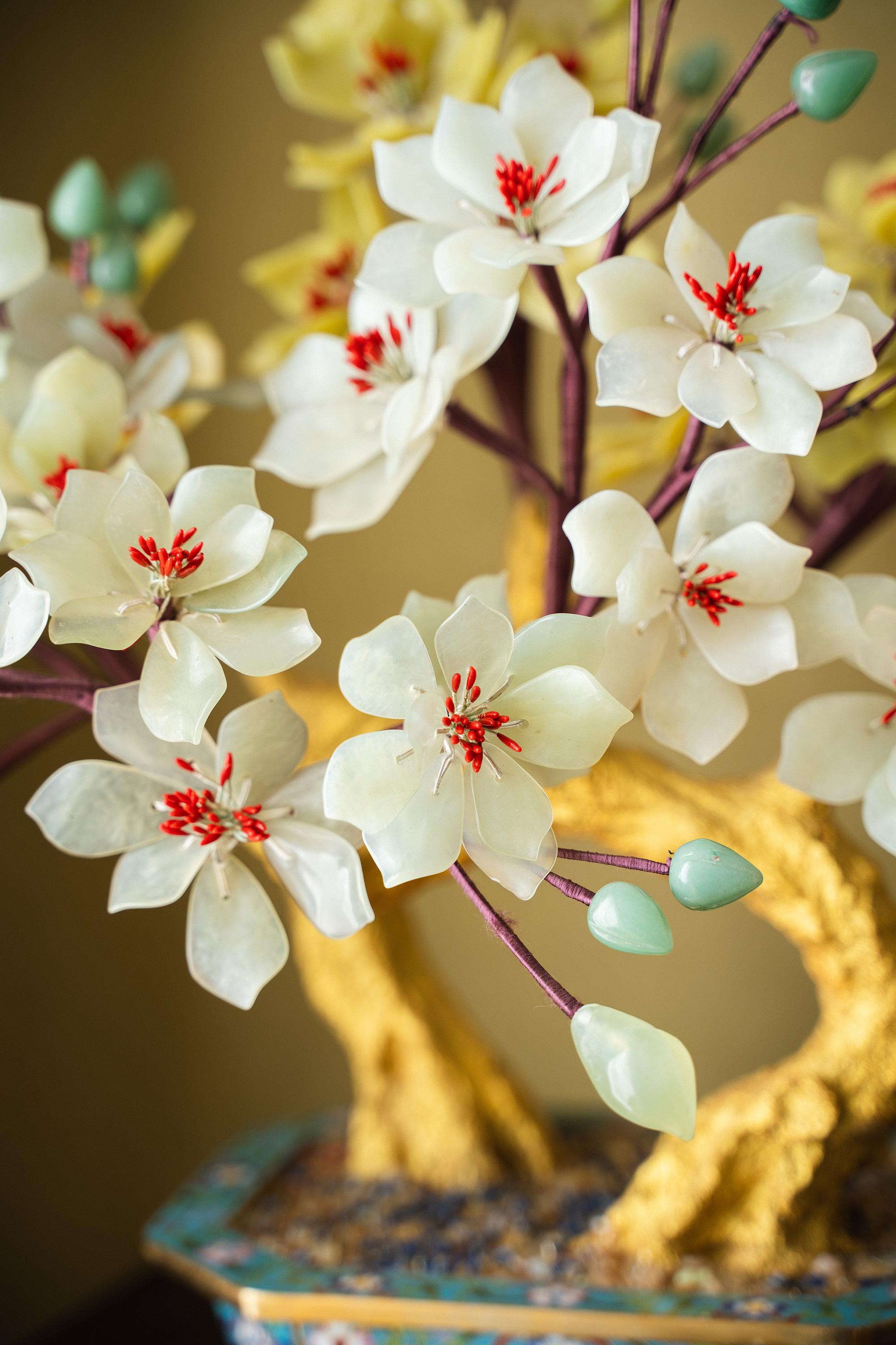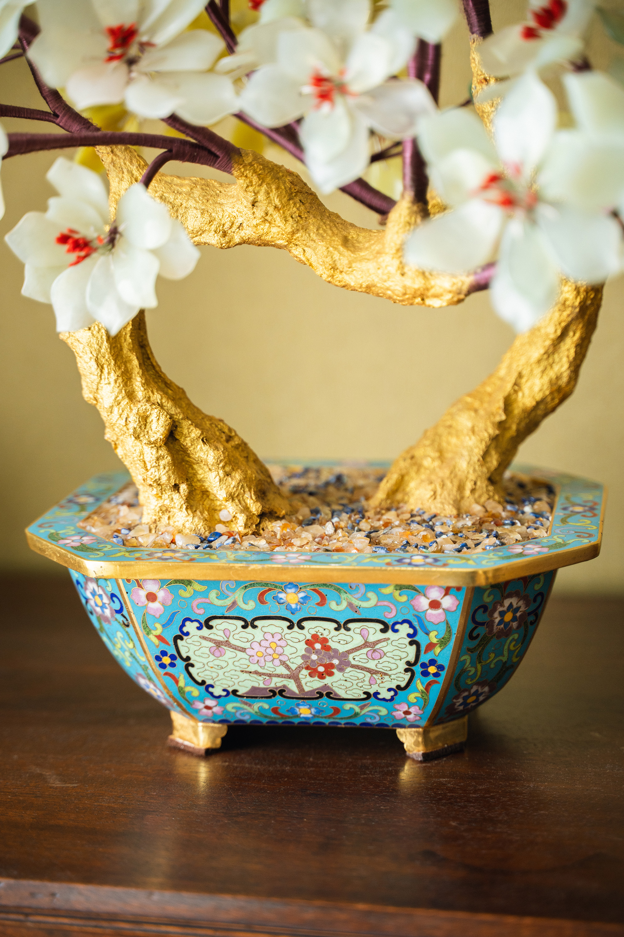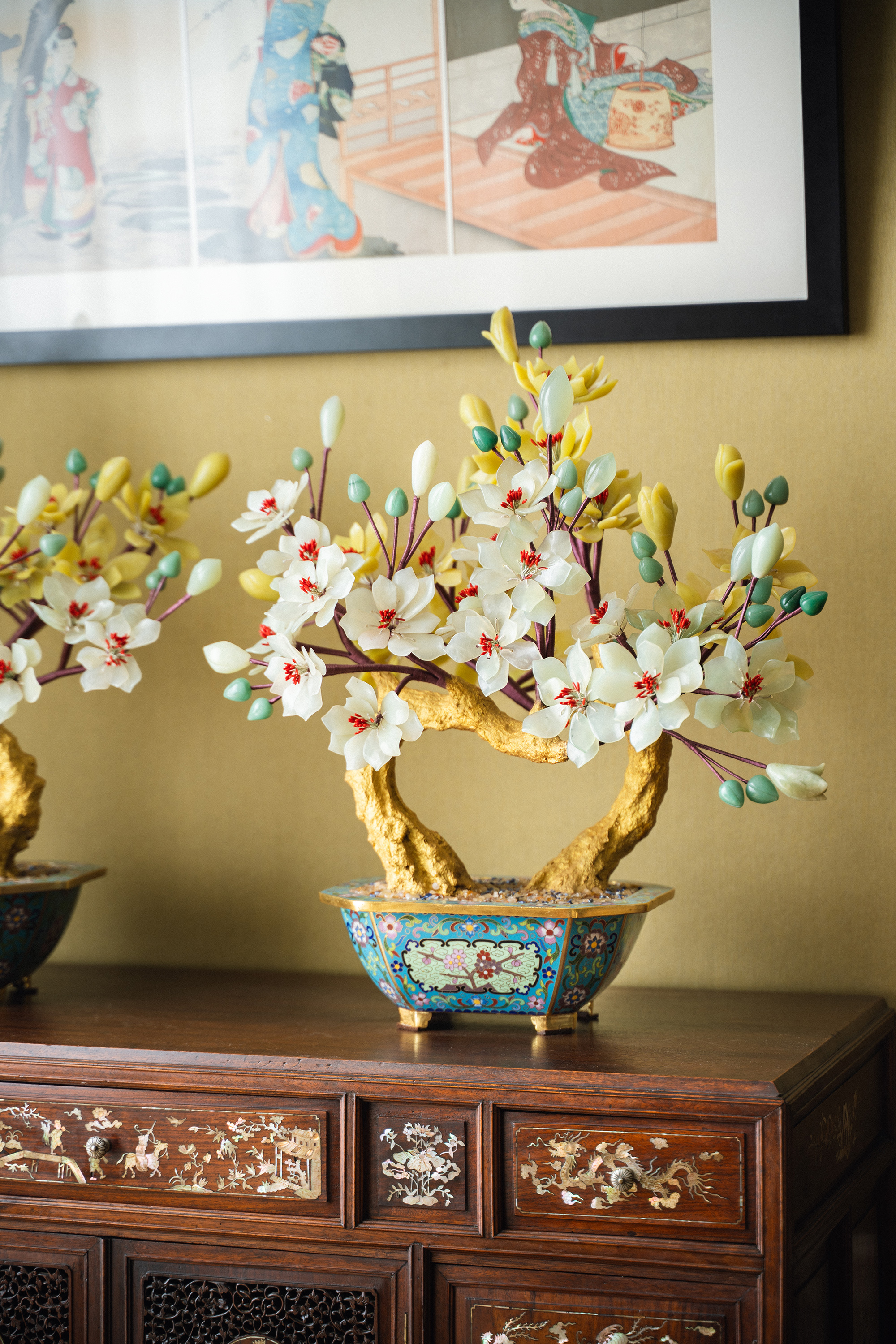 中国出品宝相花纹景泰蓝盆装饰「金枝玉堂」珍宝像生盆景一对