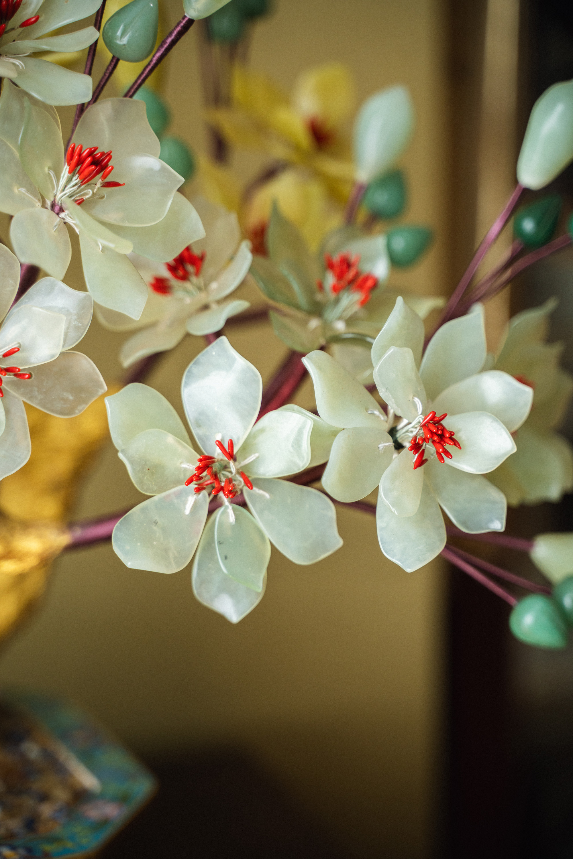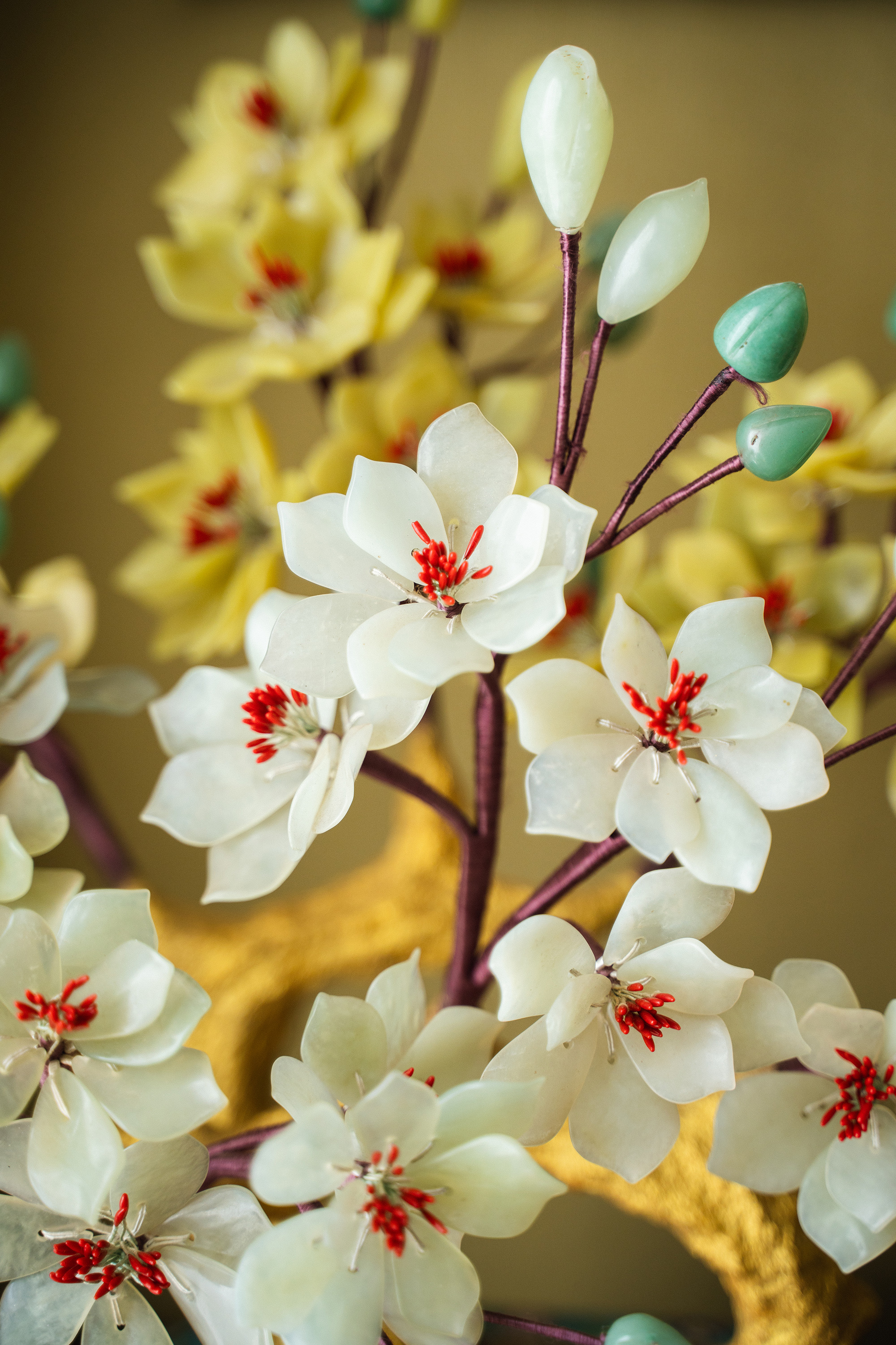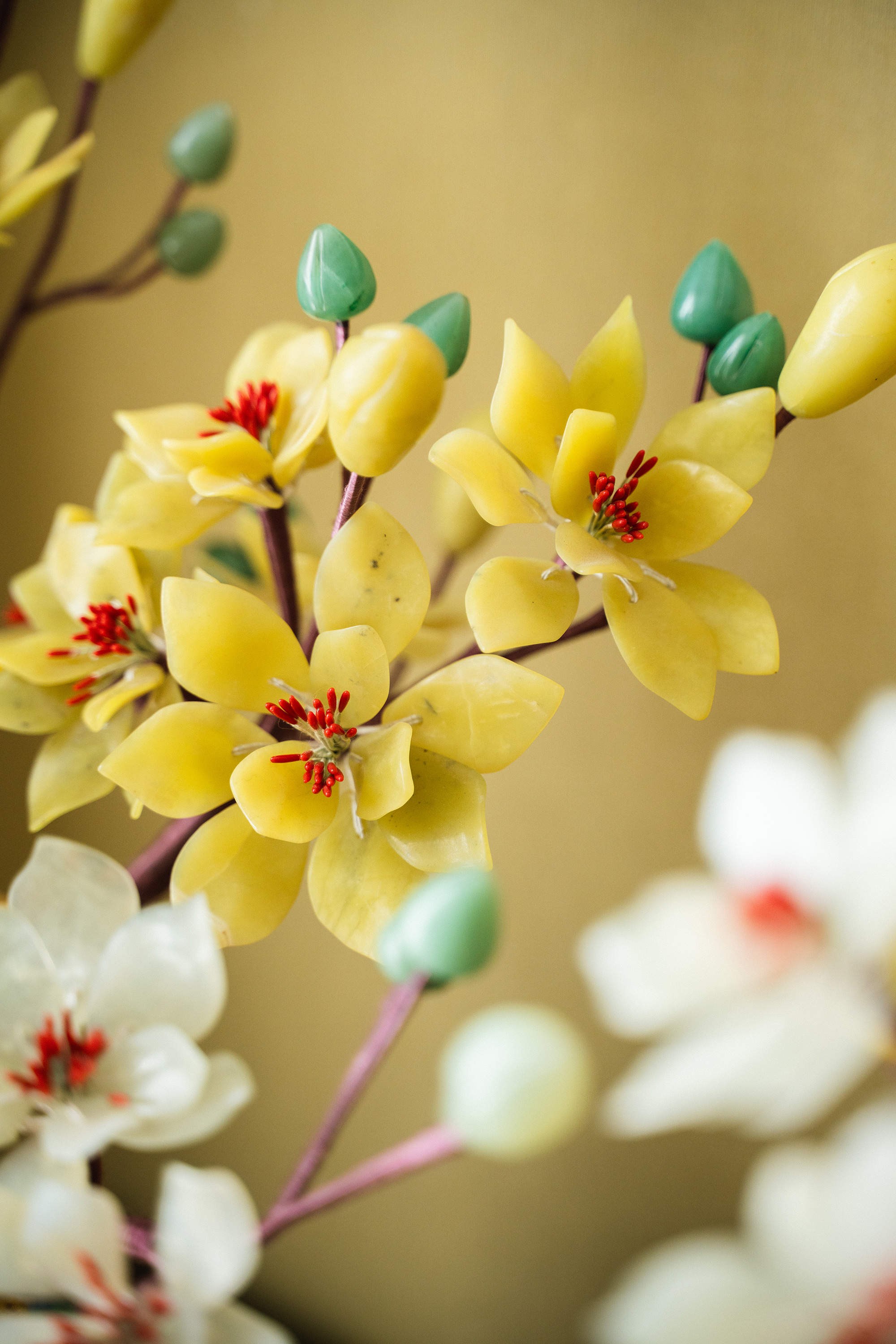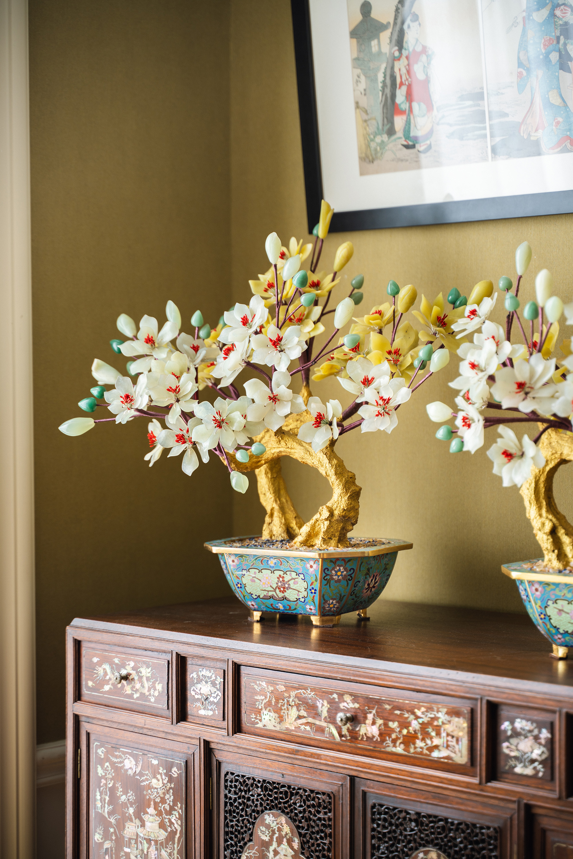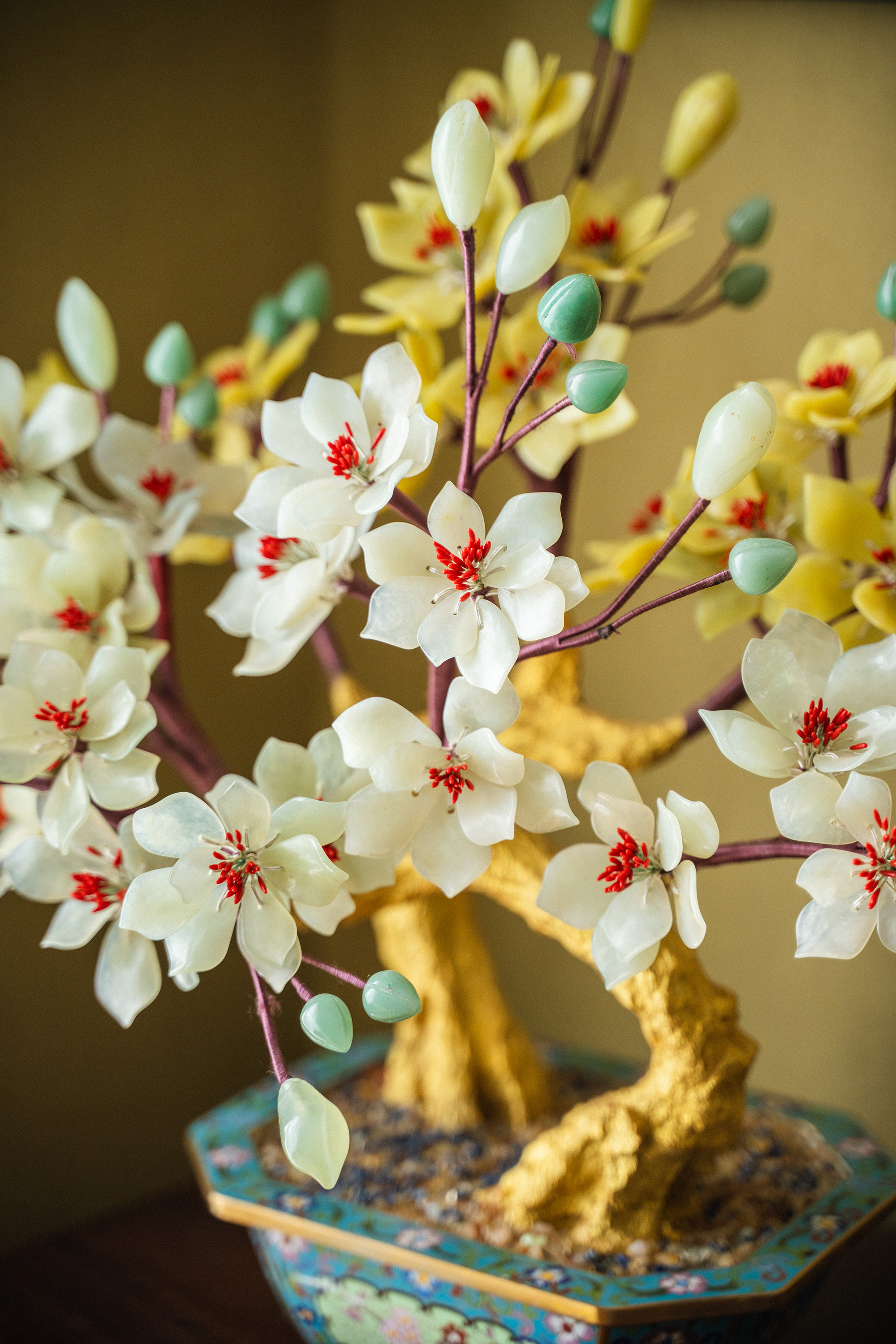 中国出品宝相花纹景泰蓝盆装饰「金枝玉堂」珍宝像生盆景一对
