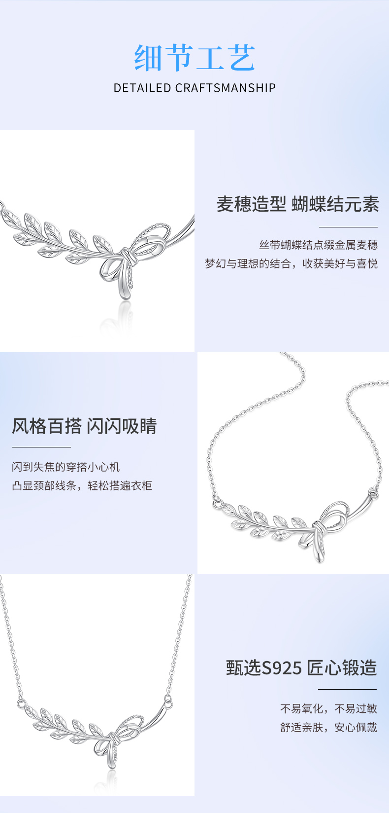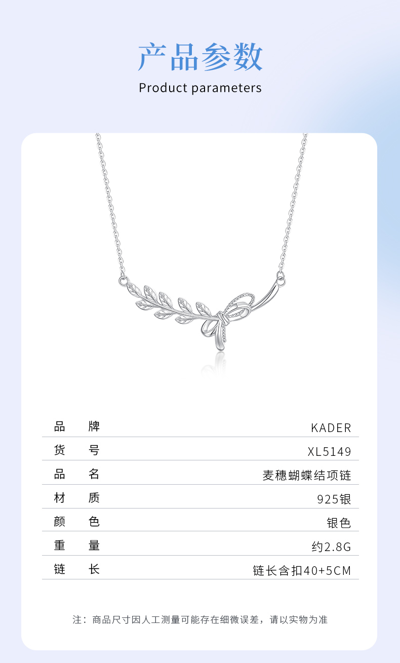 卡蒂罗/KADER 麦穗蝴蝶结项链 月桂女神轻奢高级紫藤花系列穗穗平安甜美丝带结设计锁骨链 女朋友周年礼盒