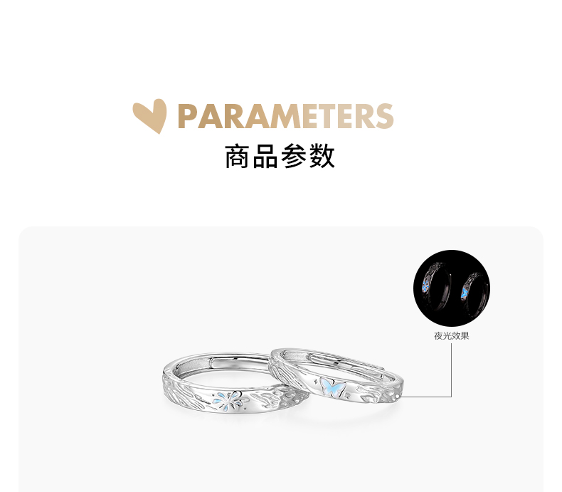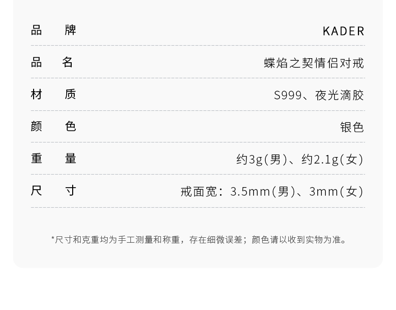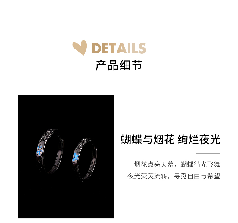 KADER卡蒂罗蝶焰之契情侣对戒 夜光999银戒指一对 轻奢高级感2025新 情侣纪念日生日礼物