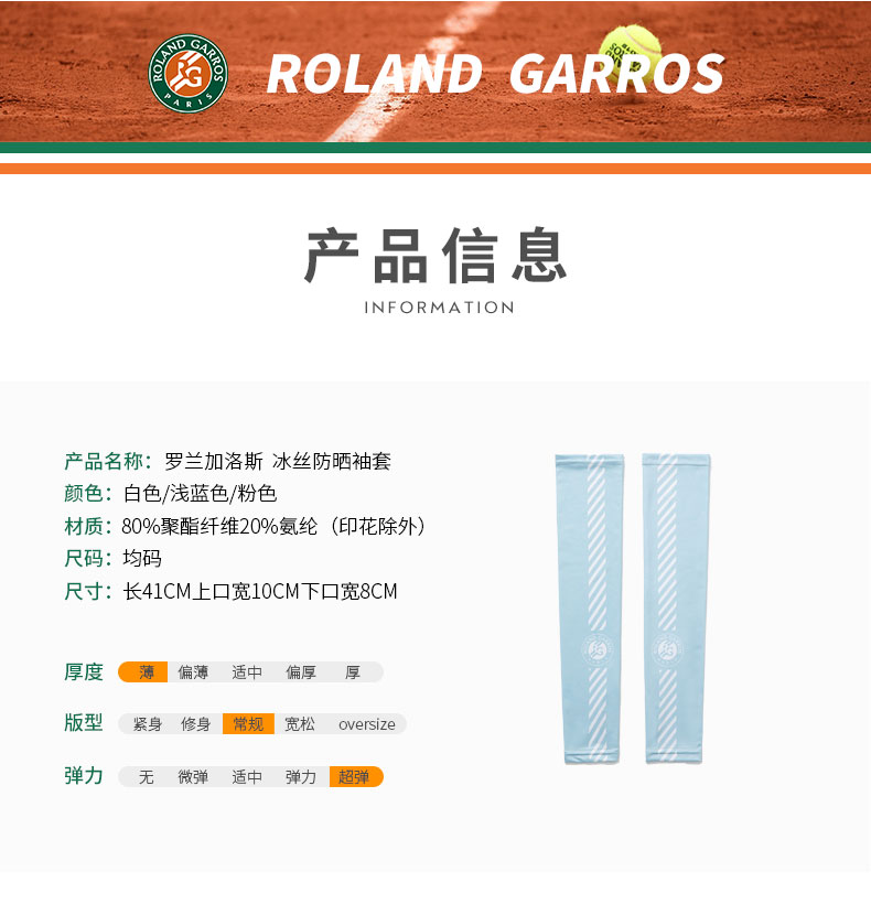 罗兰加洛斯官方正品2021夏季防紫外线户外防晒冰袖遮阳开车骑行