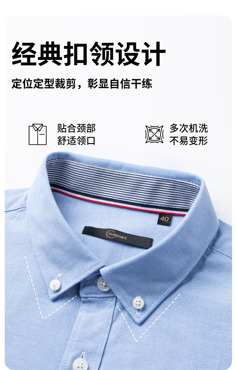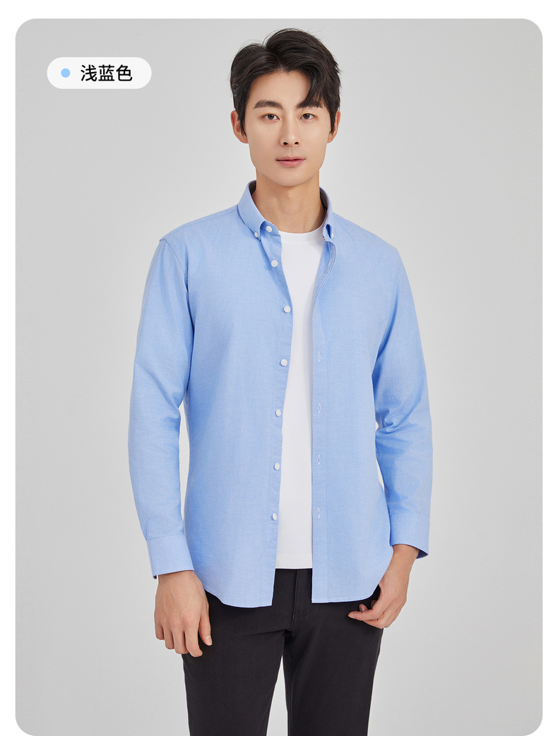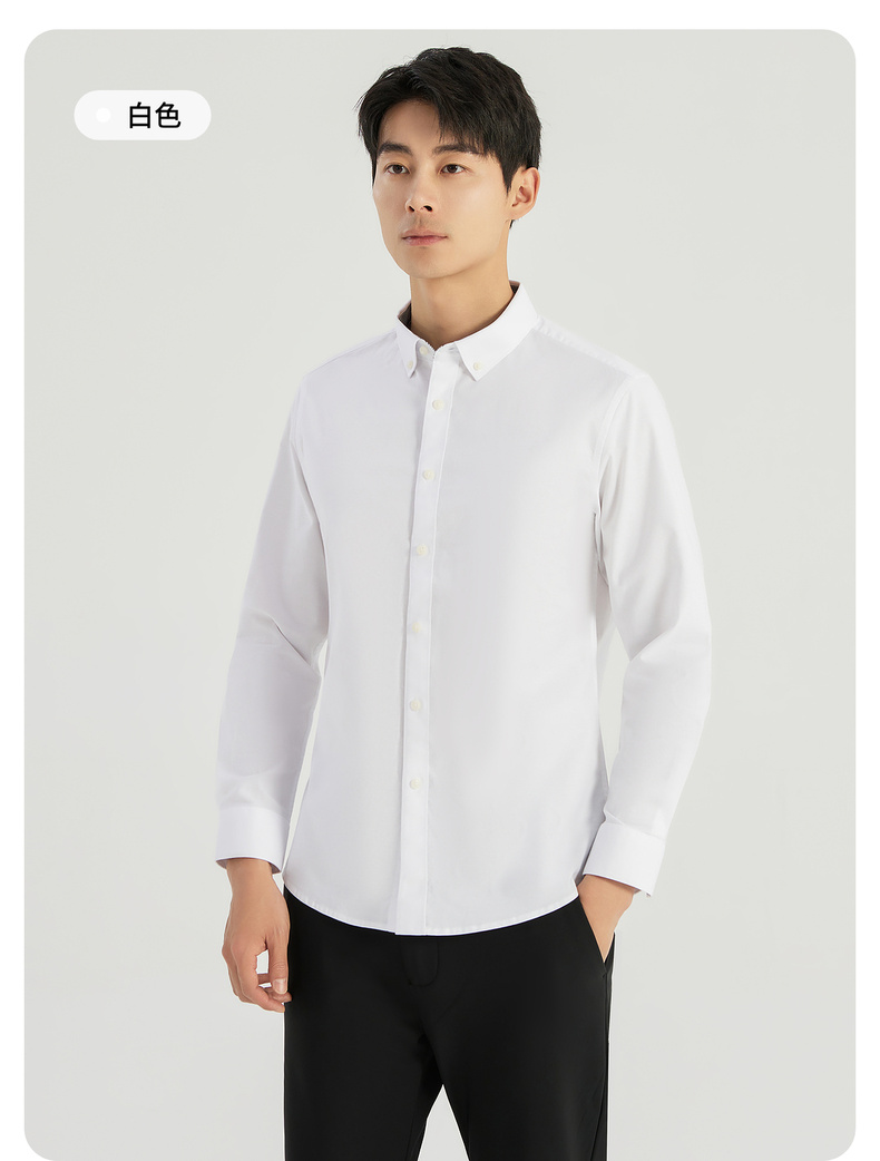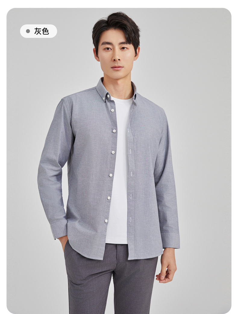 【含棉】圣德西男士衬衣2025年秋季扣领挺括舒适长袖牛津纺衬衫男