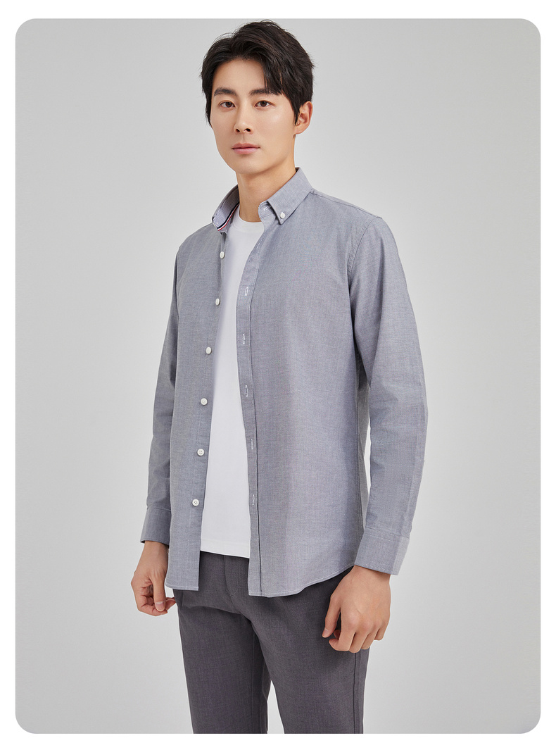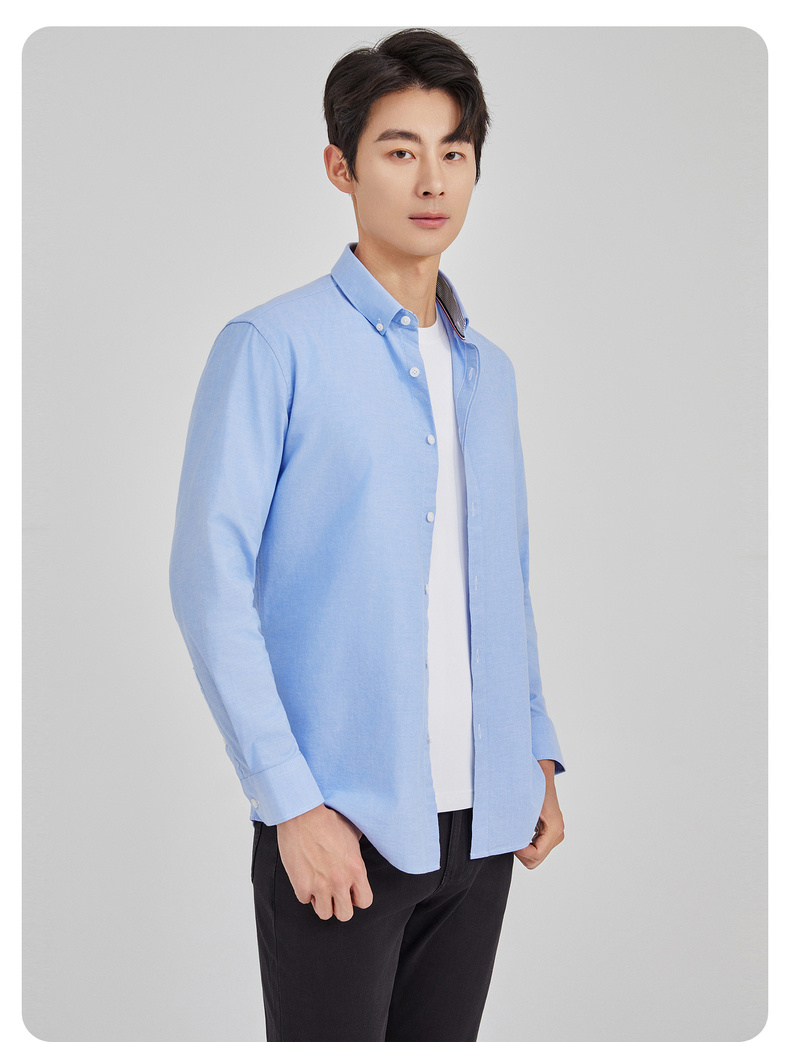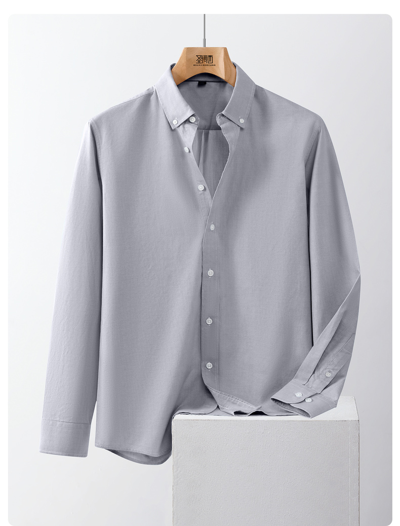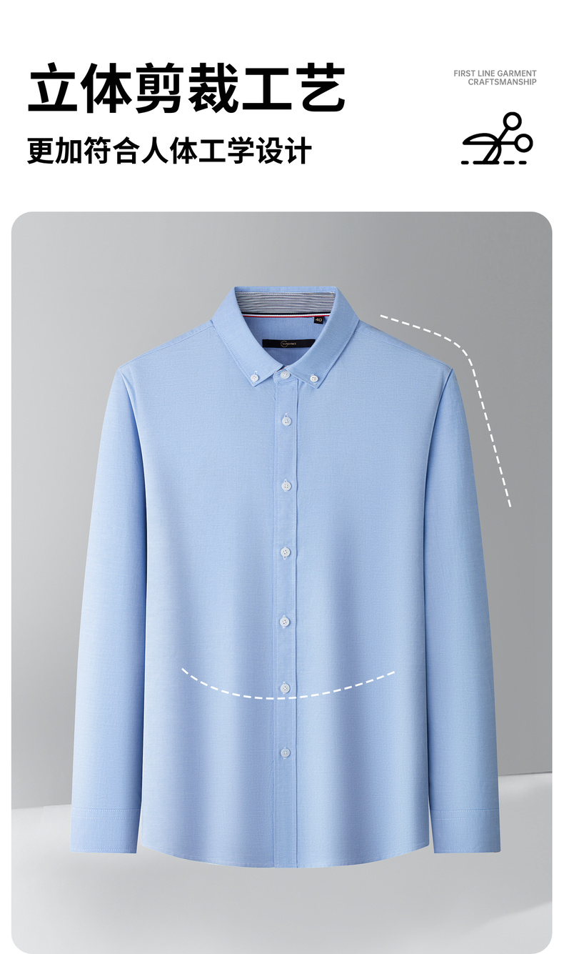 【含棉】圣德西男士衬衣2025年秋季扣领挺括舒适长袖牛津纺衬衫男