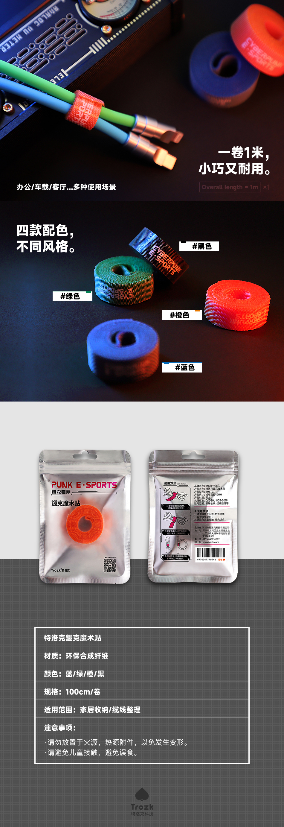 Trozk/特洛克 线材捆扎理线带 魔术贴 桌面收纳整理器 1米扣带