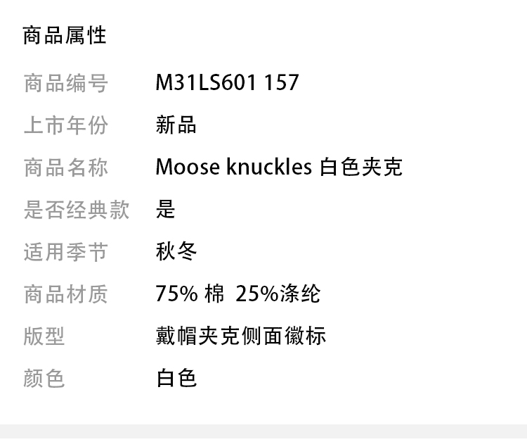 MOOSE KNUCKLES 女士卫衣 白色 M31LS601 157