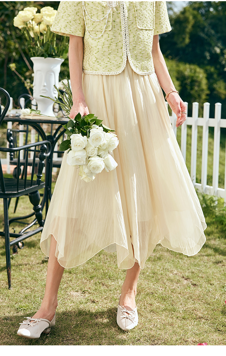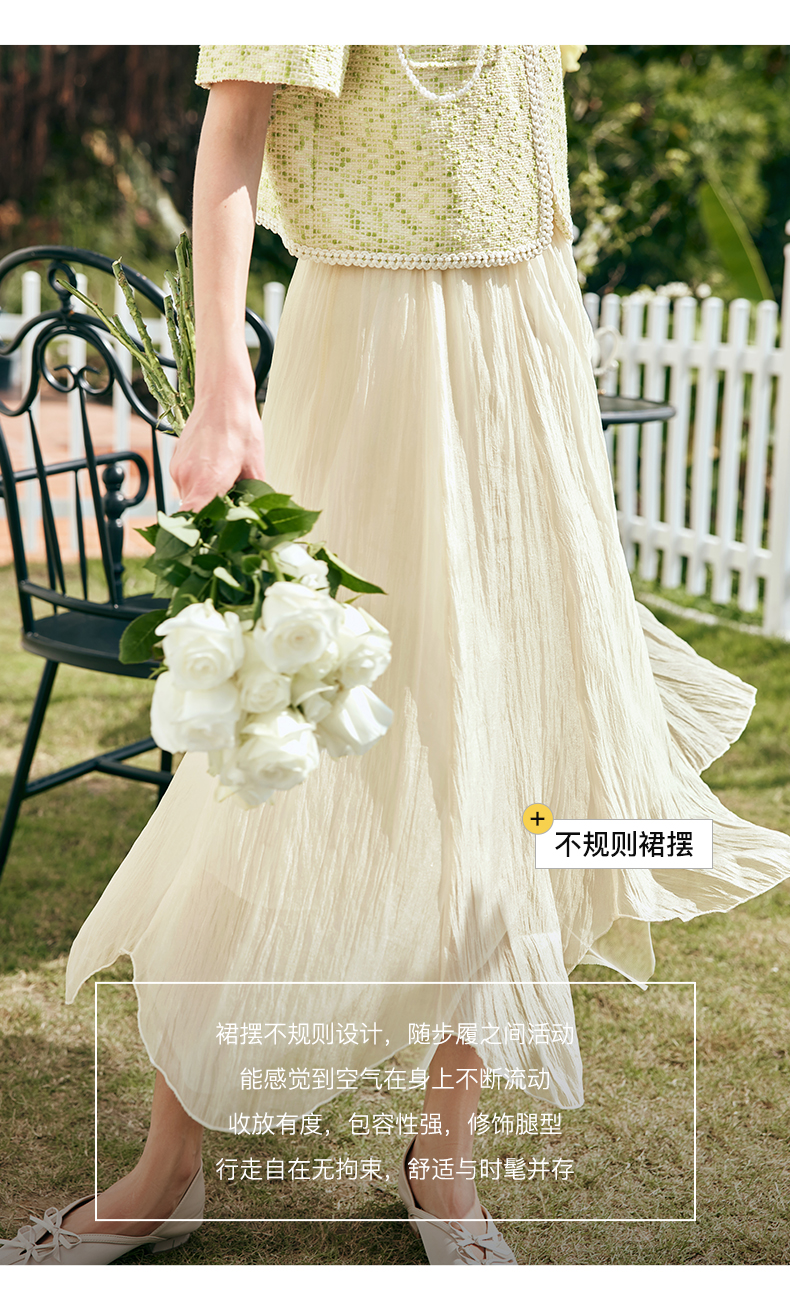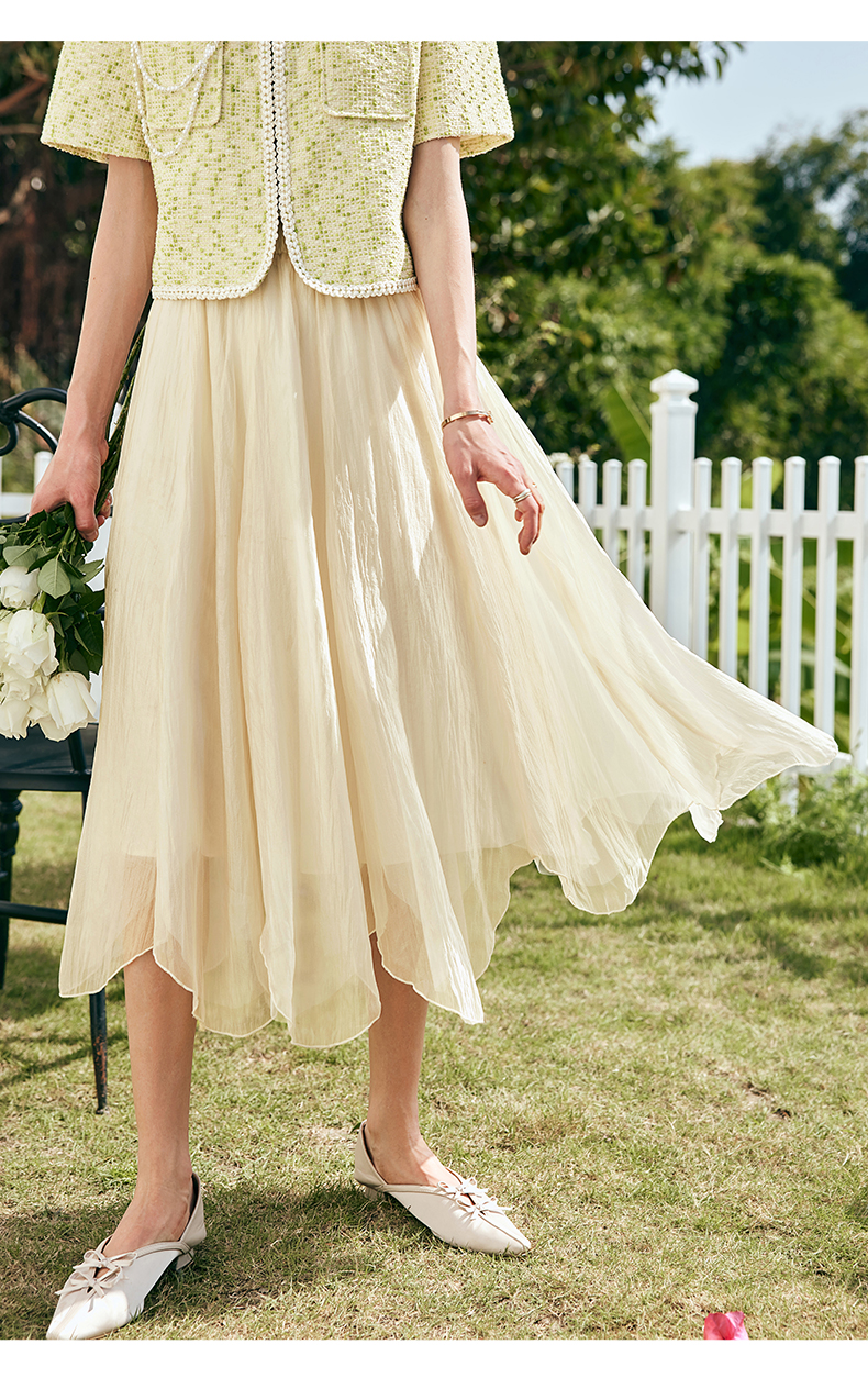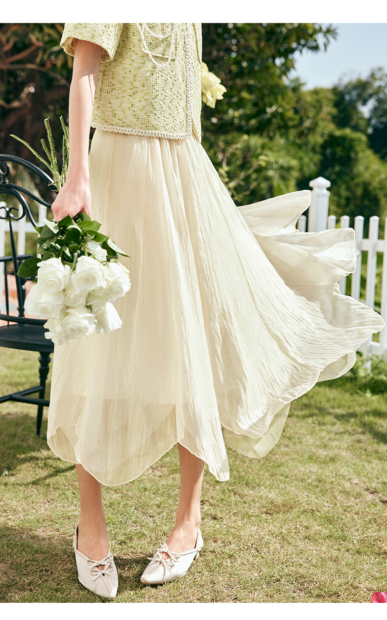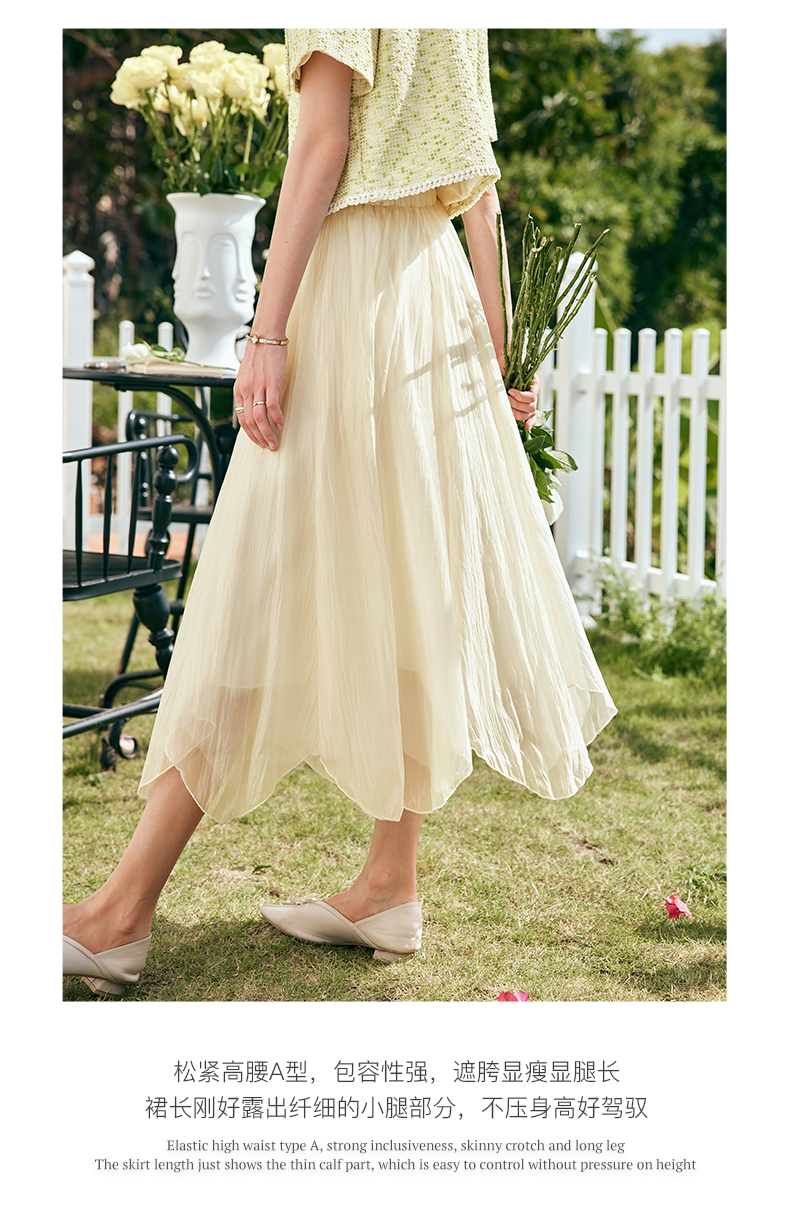 OLrain欧芮儿法式雪纺半身裙女夏季2023年新款高腰不规则A字纱裙