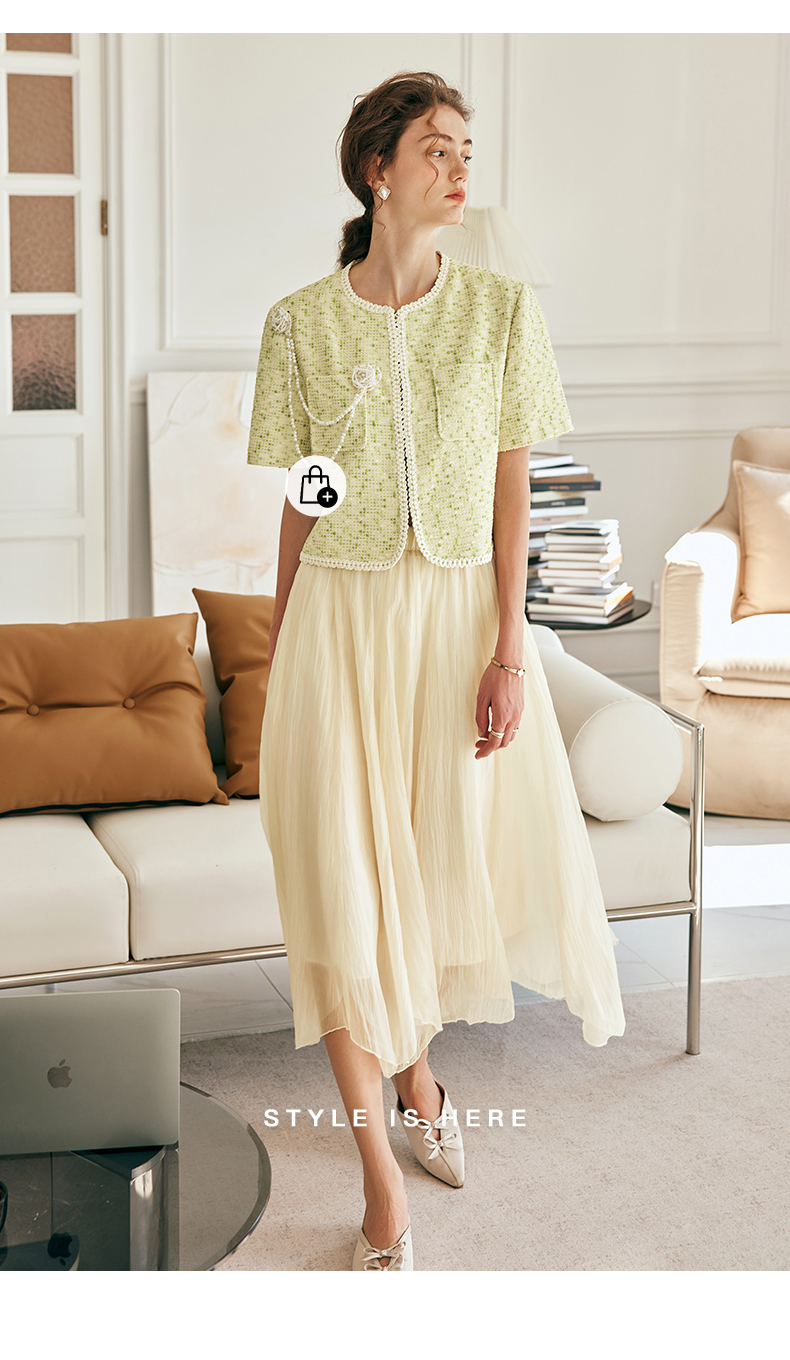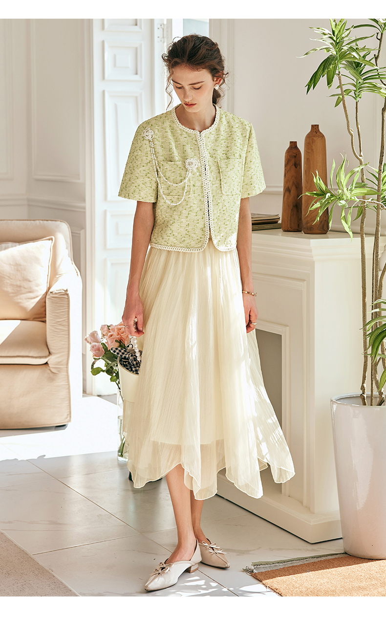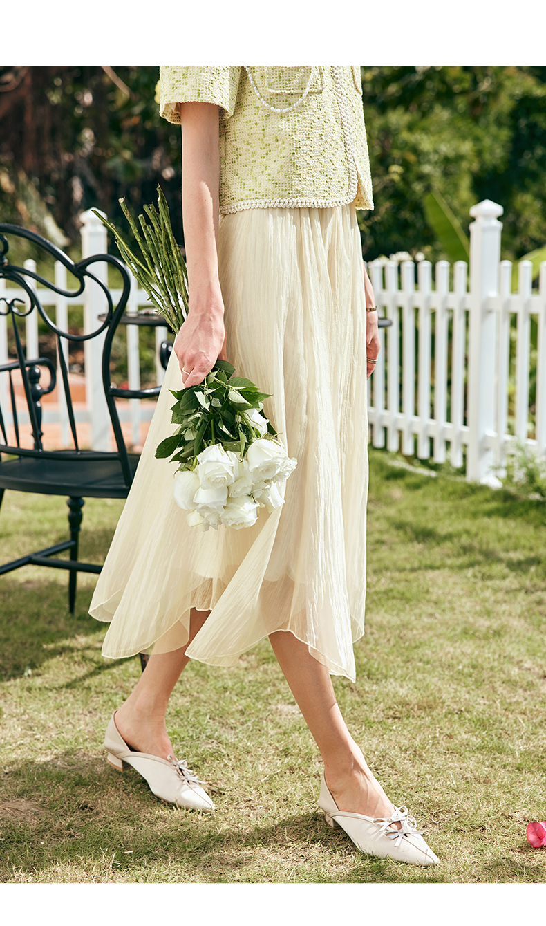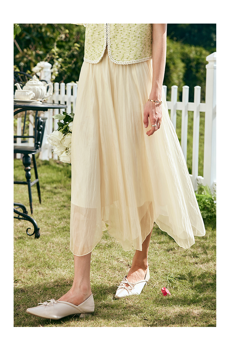OLrain欧芮儿法式雪纺半身裙女夏季2023年新款高腰不规则A字纱裙