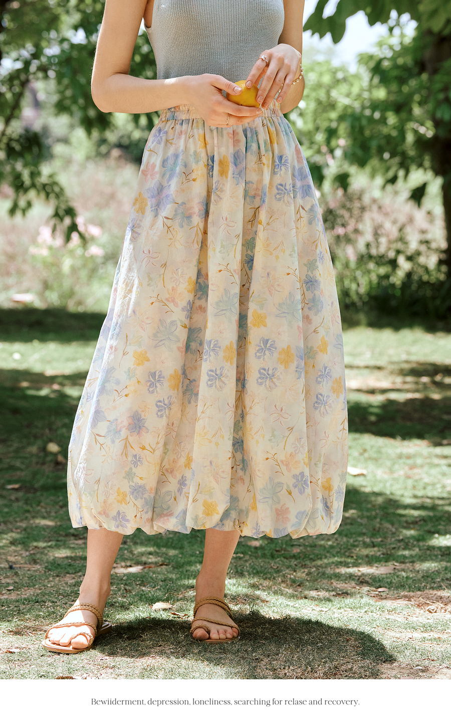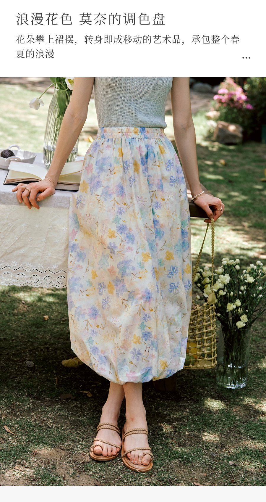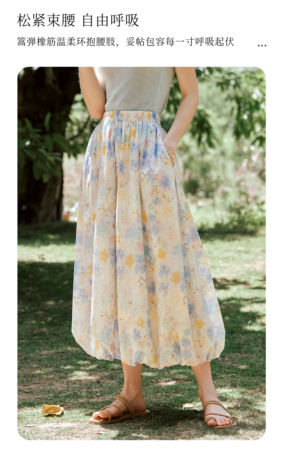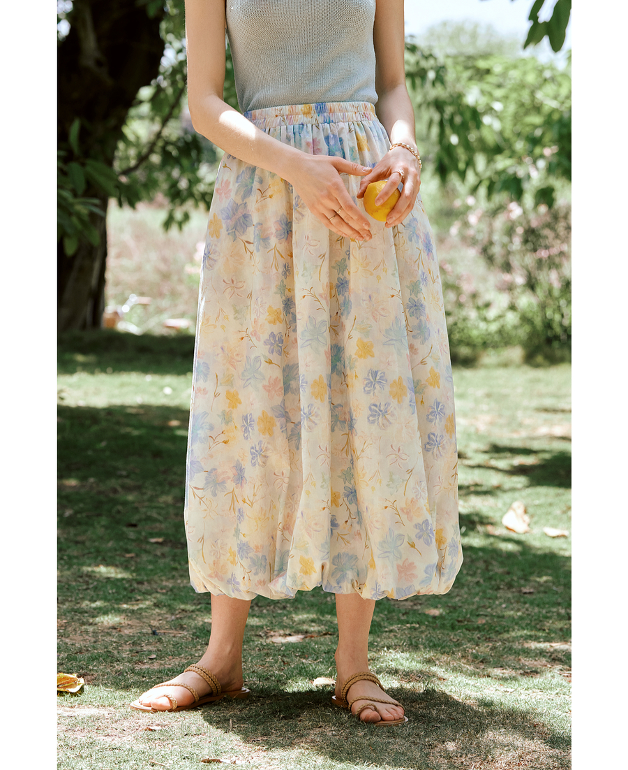 OLrain欧芮儿法式浪漫花色橡筋腰花苞裙女夏季2025新款休闲裙子