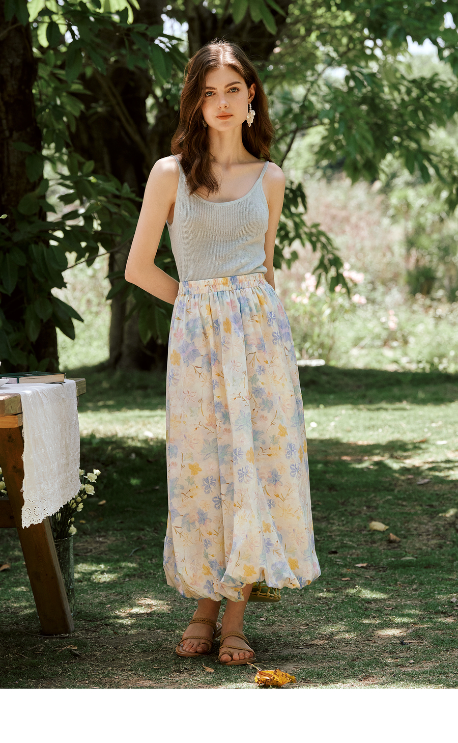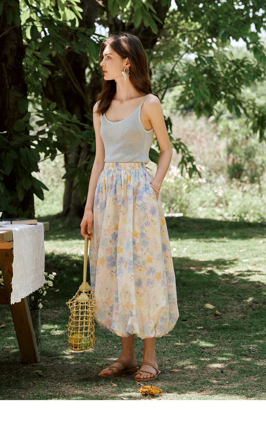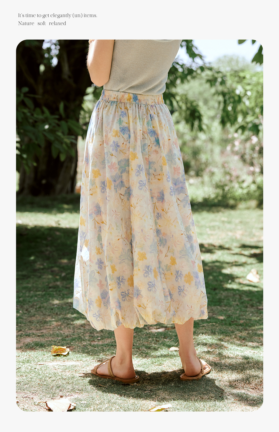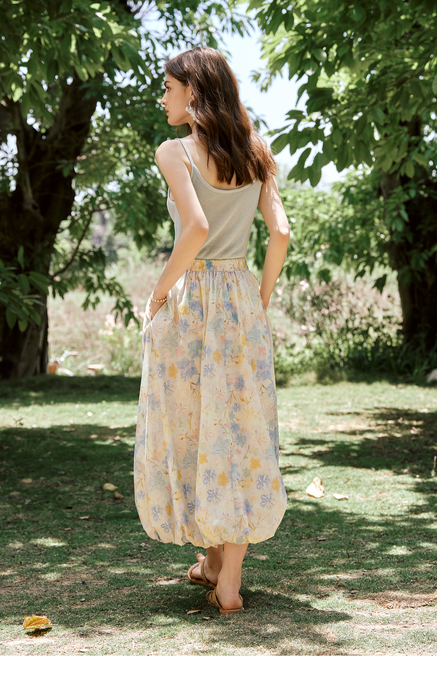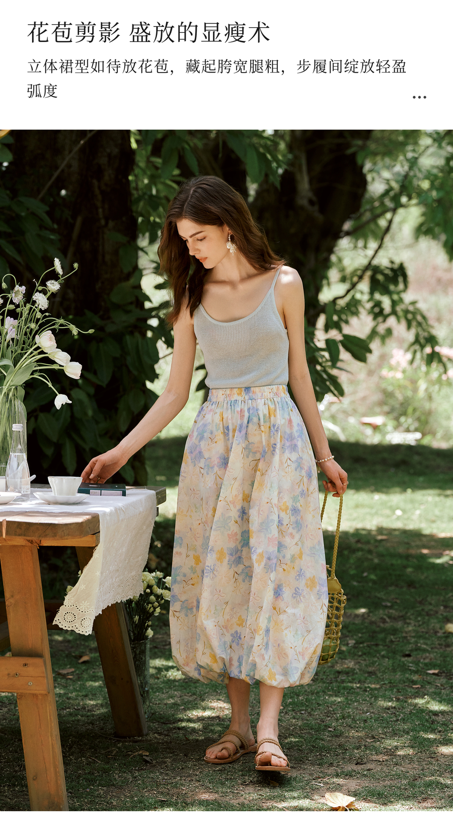 OLrain欧芮儿法式浪漫花色橡筋腰花苞裙女夏季2025新款休闲裙子