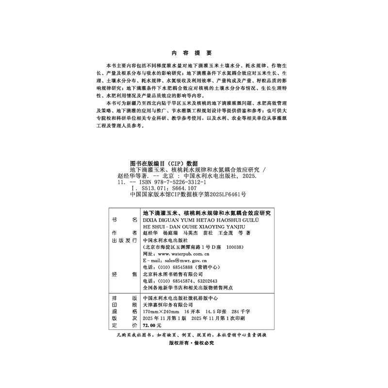 地下滴灌玉米、核桃耗水规律和水氮耦合效应研究