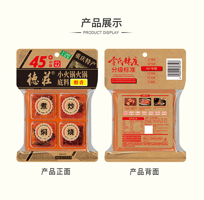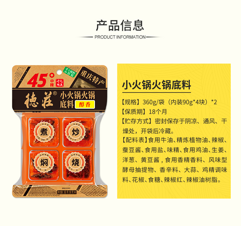 德庄小火锅火锅底料45° 360g/袋(内装90g*4块)*2
