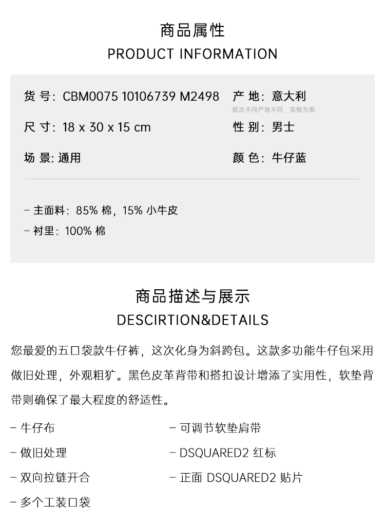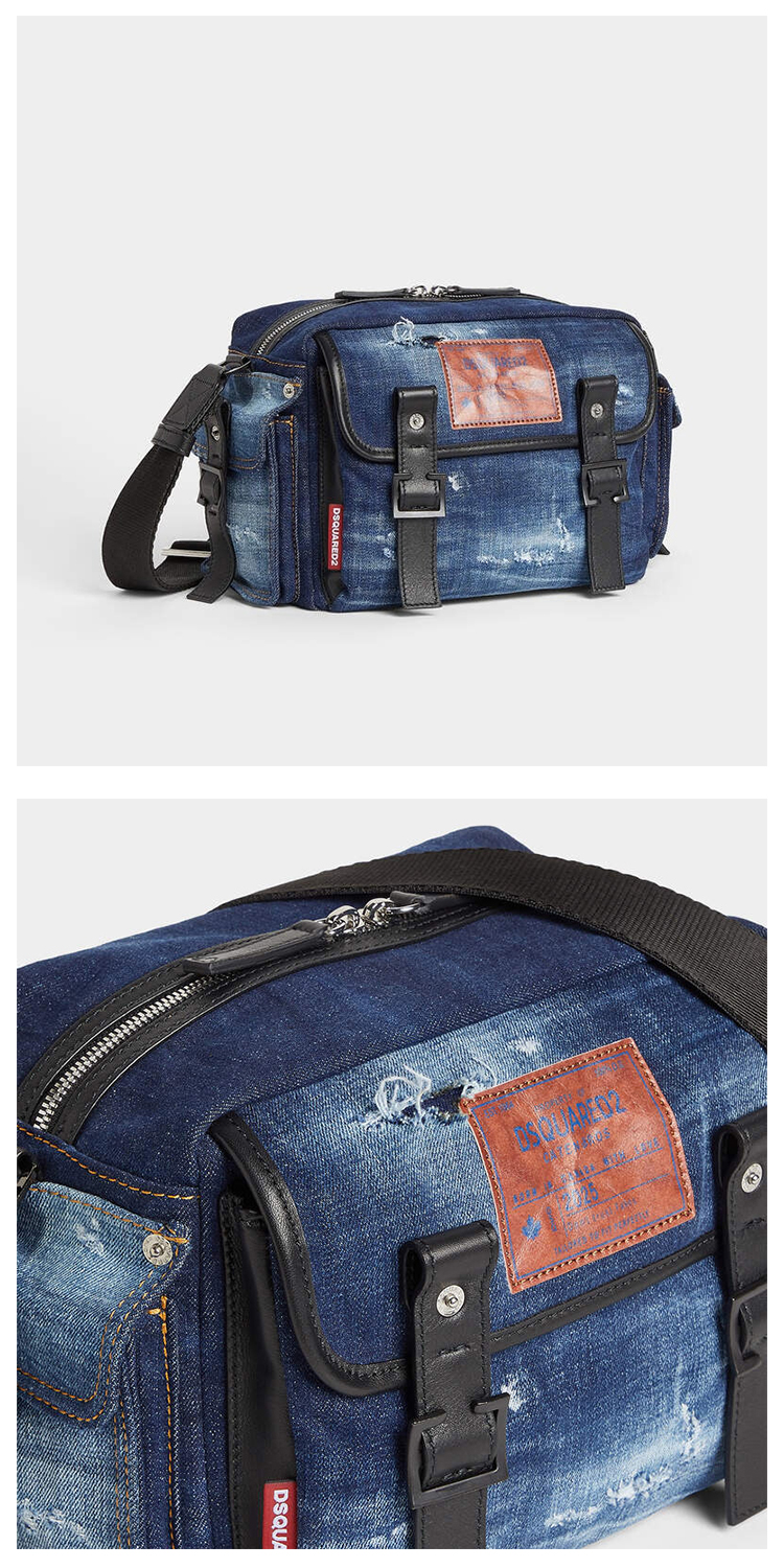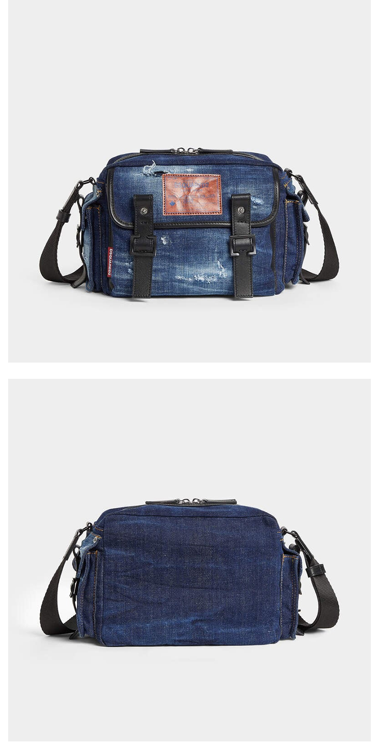 DSQUARED2 男士徽标贴片牛仔斜挎单肩包 牛仔蓝 CBM0075 10106739 M2498