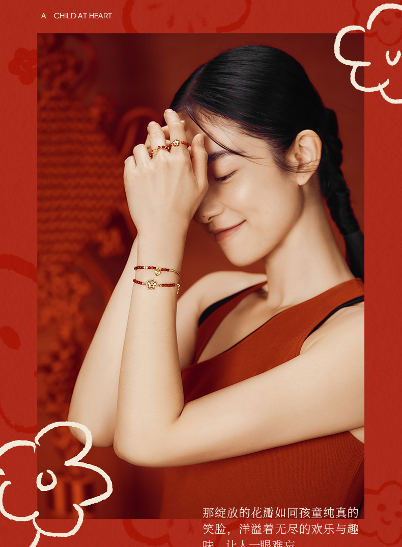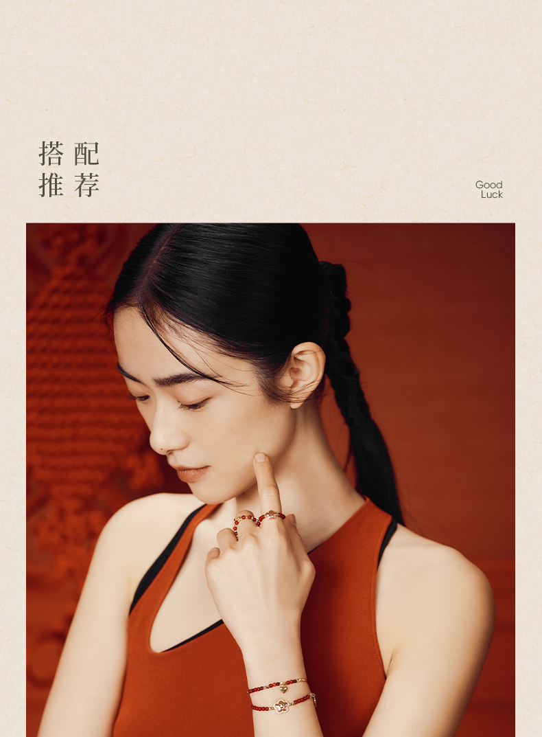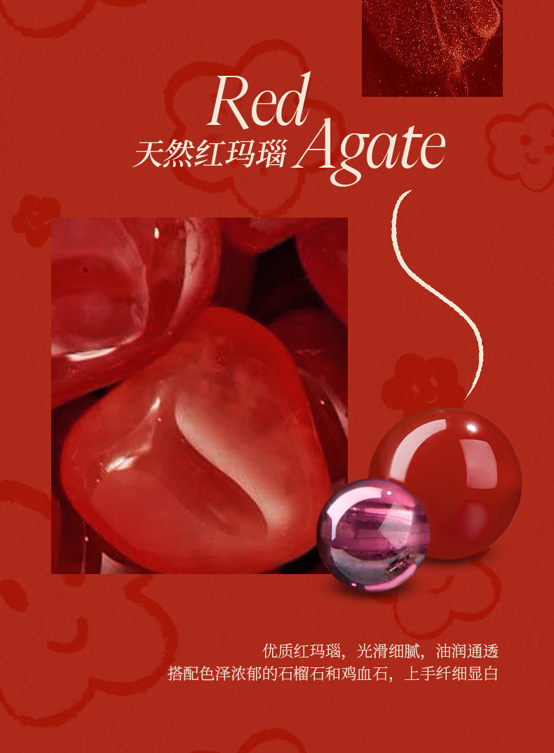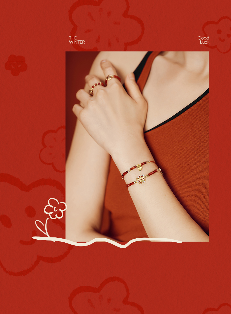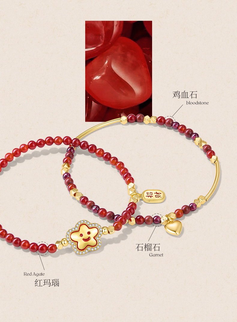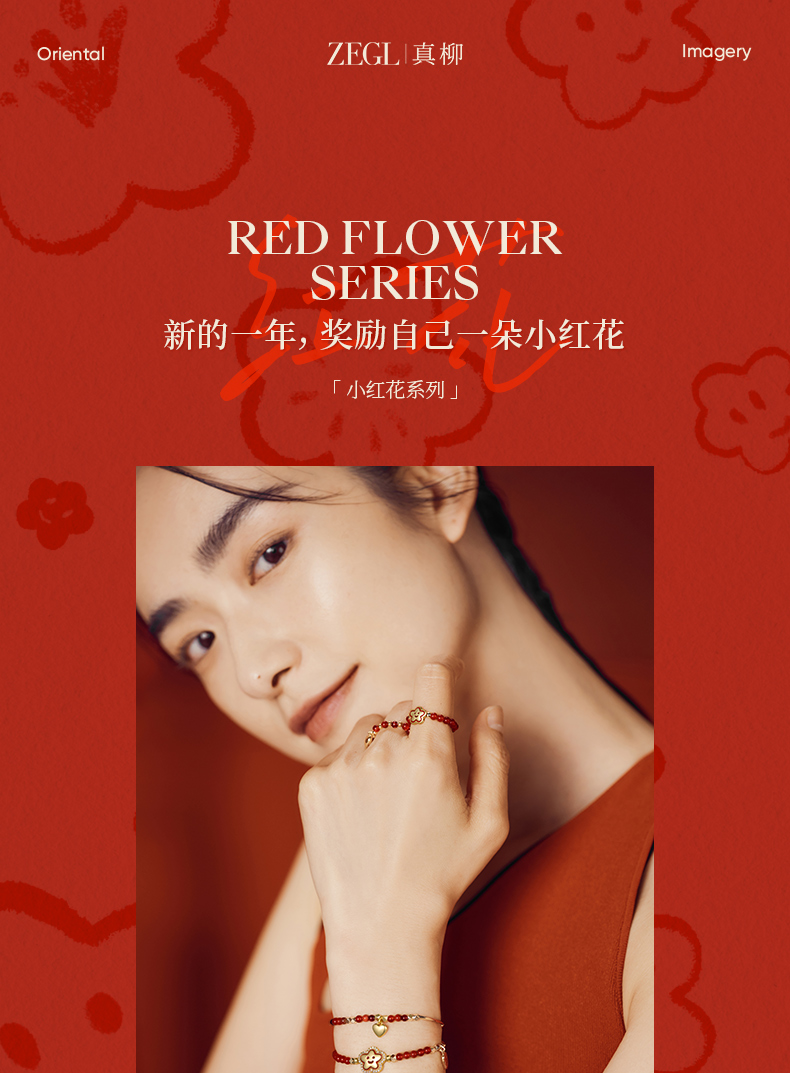 ZEGL真柳设计师小红花系列红玛瑙手链石榴石手串女红色串珠手饰品