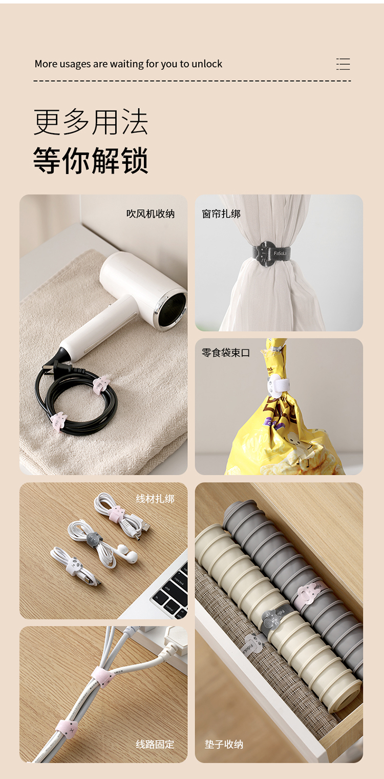 FaSoLa据线收纳扣充电线固定理线器束线带绑线整理电脑集绕线器魔术贴