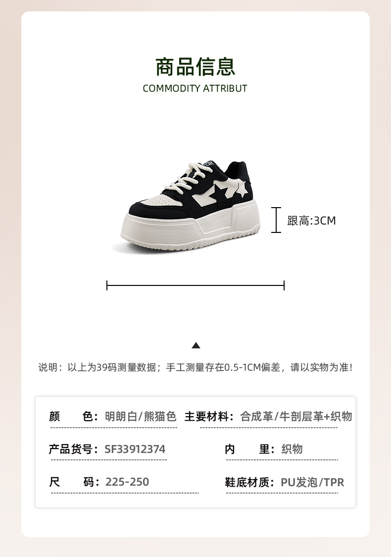 超值精选 | Safiya/索菲娅2023秋冬潮流星星厚底透气松糕运动休闲板鞋 SF33912374