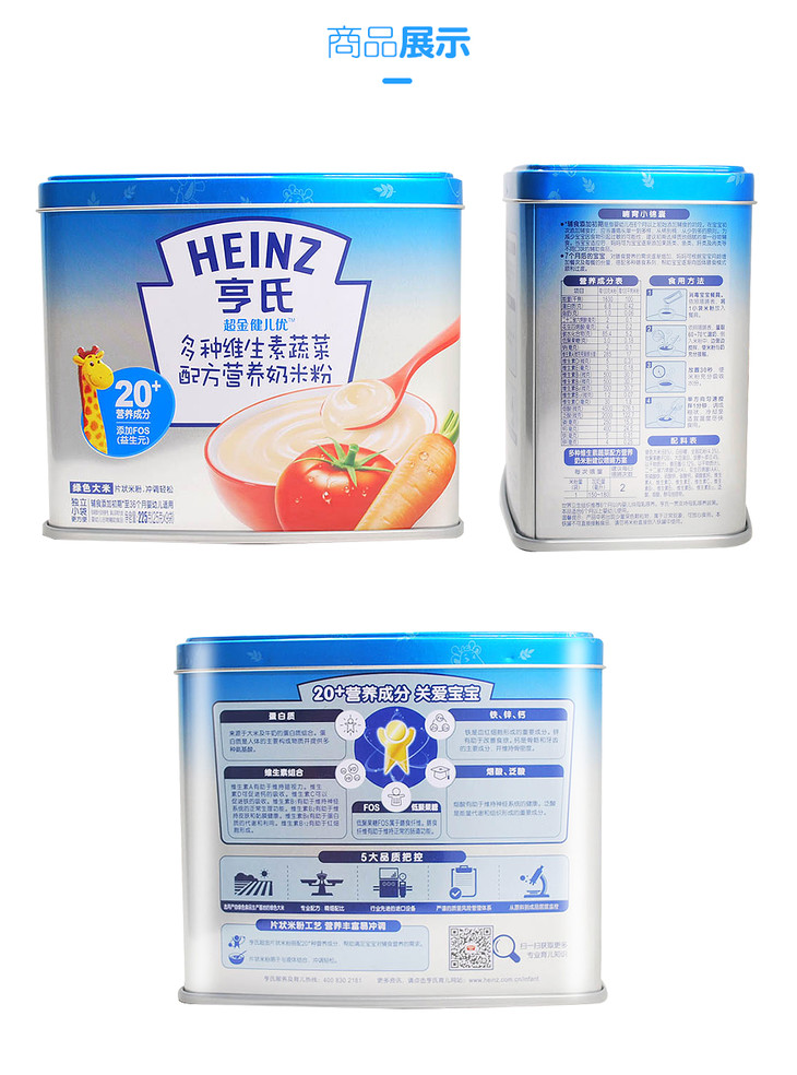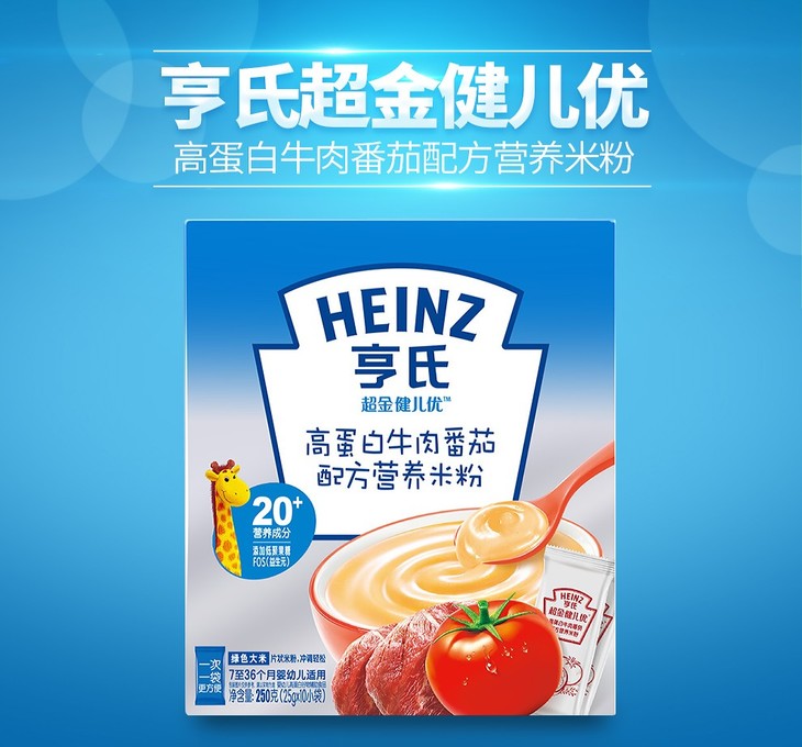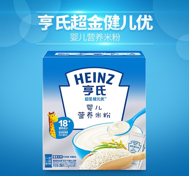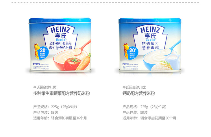 亨氏超金小蓝罐铁锌钙三文鱼配方营养米粉225g
