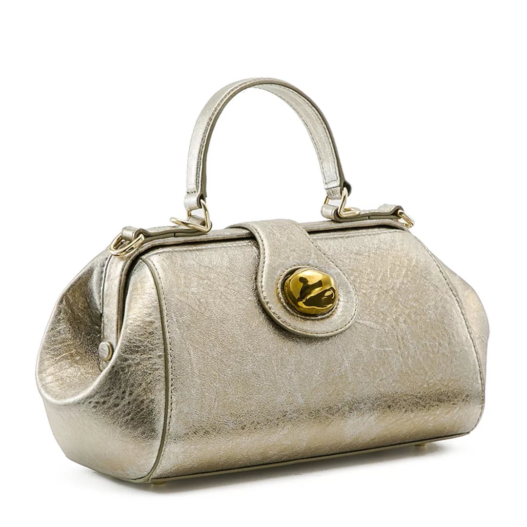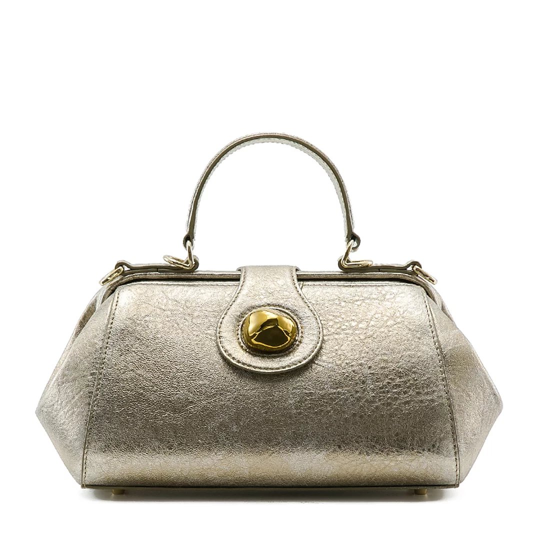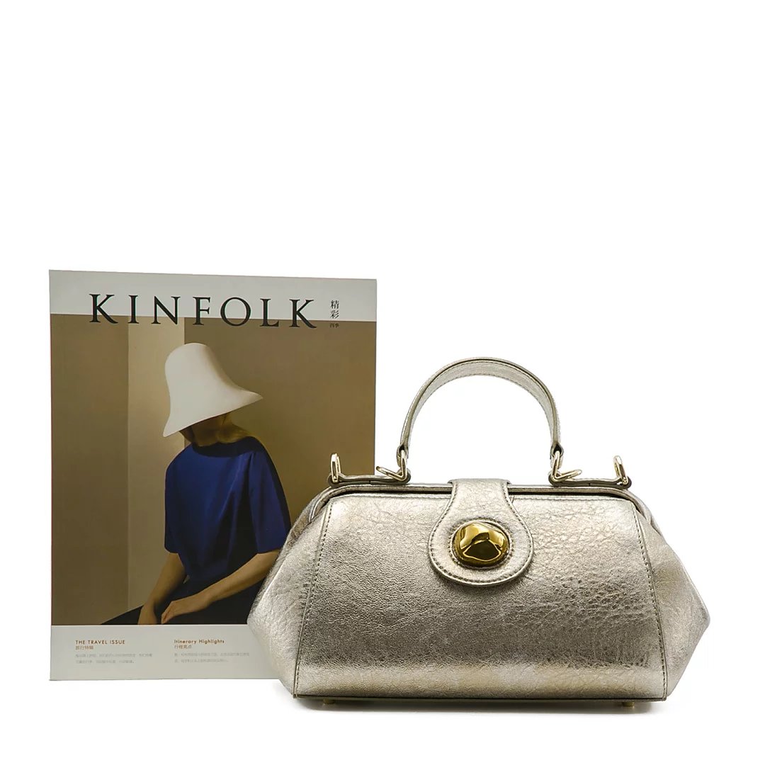 颜色:金色 尺寸:L30xW15 xD11cm 材质:进口优质羊皮(绸缎内里) 标配:可拆卸长肩带(无鸵鸟毛) 选配:鸵鸟毛肩带(价格1000元) 这是一款经典Doctor Bag。外观线条流畅,硬挺的铰框带出复古的正式感,配有可拆卸长肩带(无鸵鸟毛),手拎肩背、通勤晚宴无缝衔接,包包虽小巧精致,却容量惊人,不易变形。浅金色法国进口自然肌理羊皮,手感柔软,高贵不失轻灵,低调奢华,也是百搭色。同时沿用了瓷说系列的金色瓷珠为景德镇手工匠人专属定做,出产量极低,色泽别致,每件都如艺术品般珍贵,顾客享受到独一无二的体验。