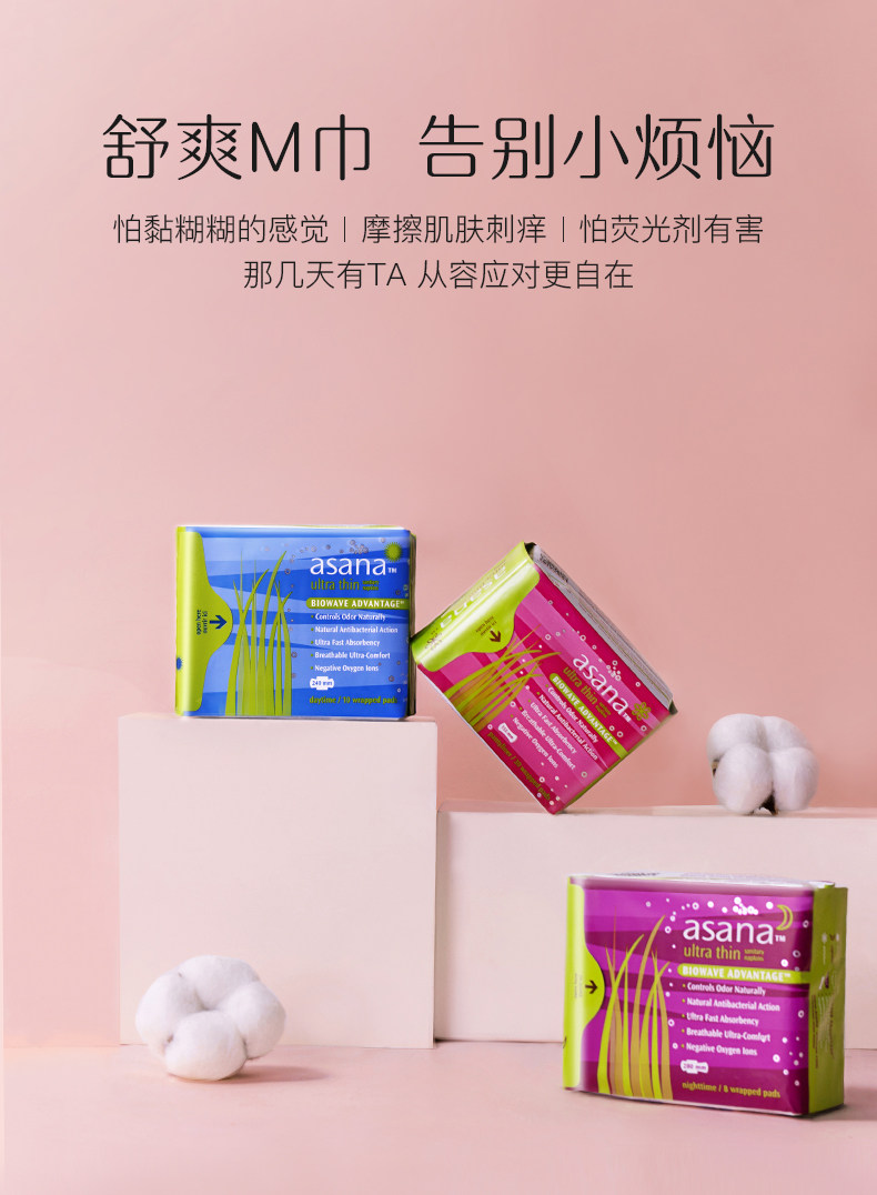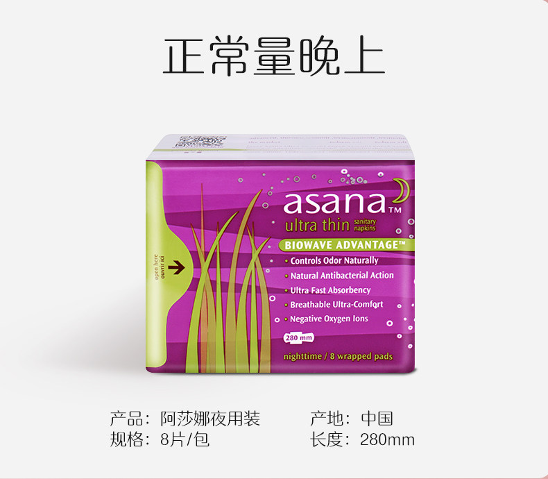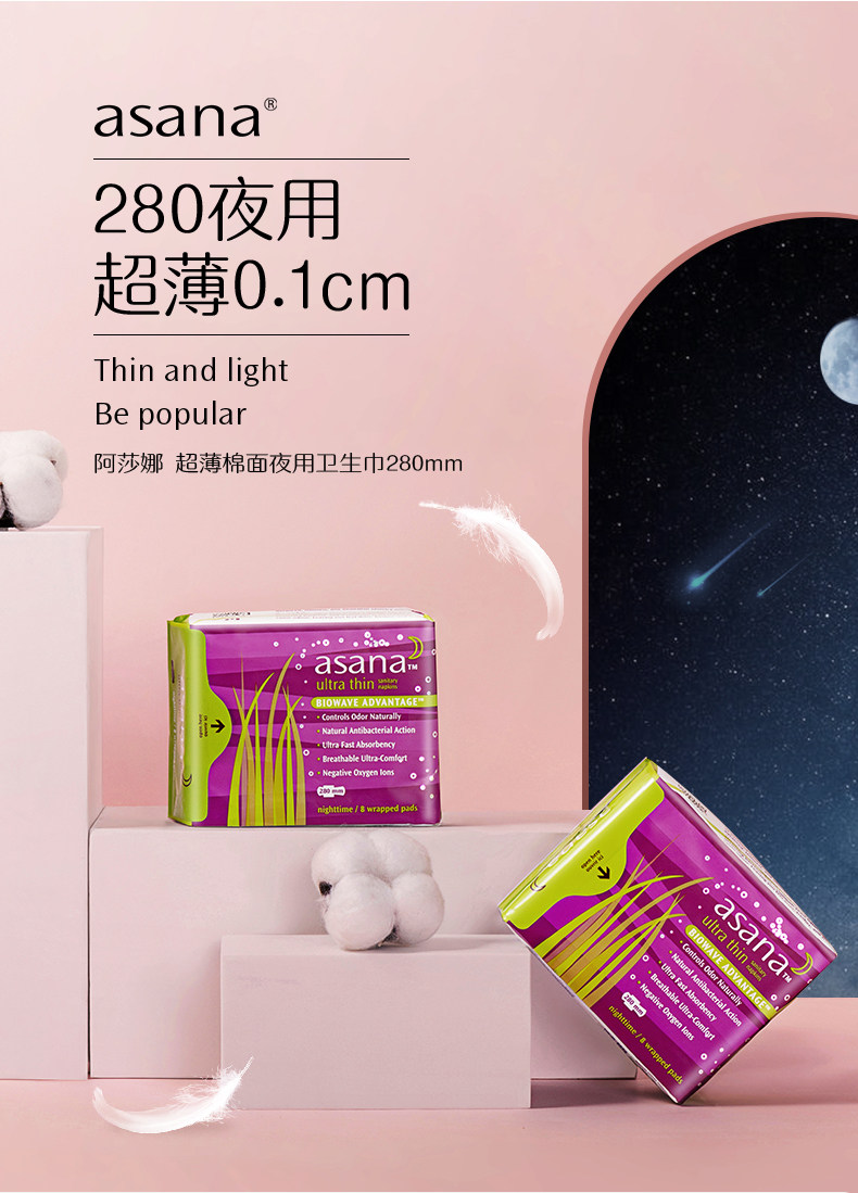 Asana阿莎娜 超薄棉面夜用卫生巾280mm*8p