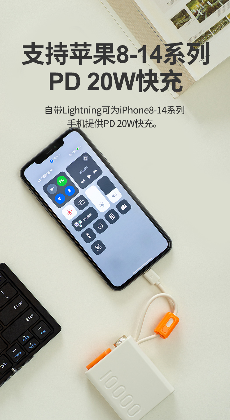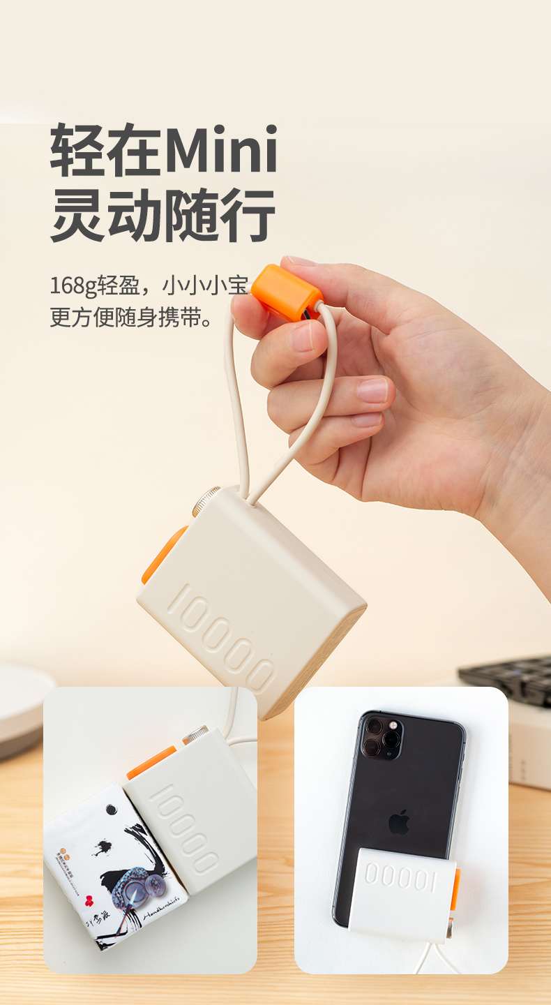幻响小小宝超级快充移动电源S8 10000毫安 自带Type-C充电线、Lightning线 支持快充 迷你携带