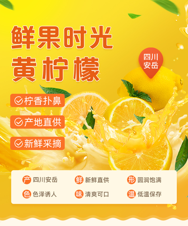 四川安岳黄柠檬大果实惠装3斤/5斤装【新鲜水果】佳沃