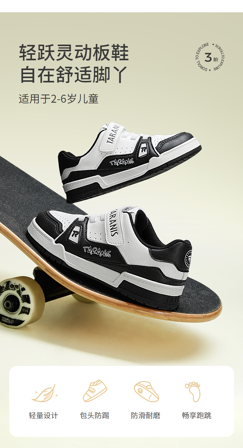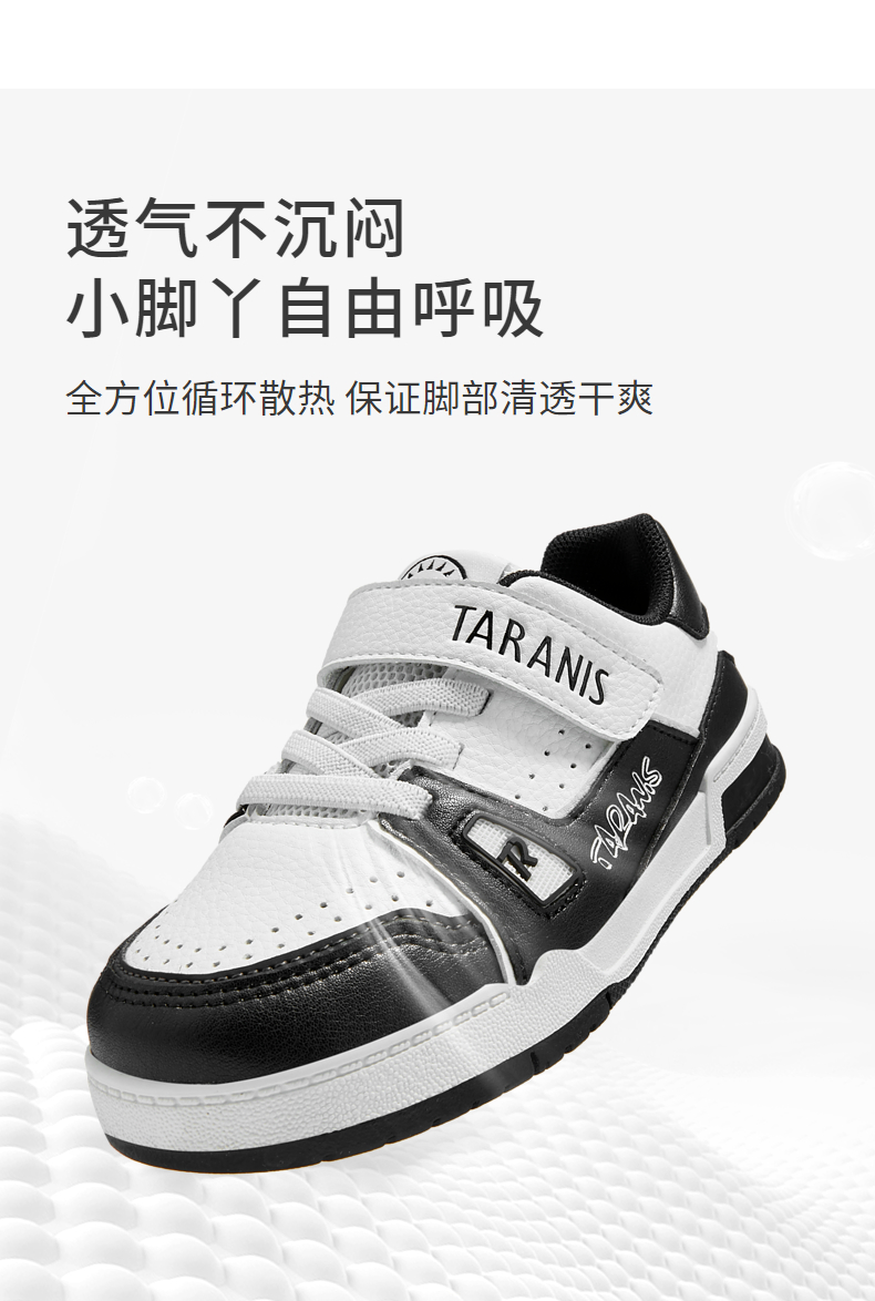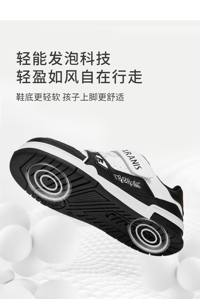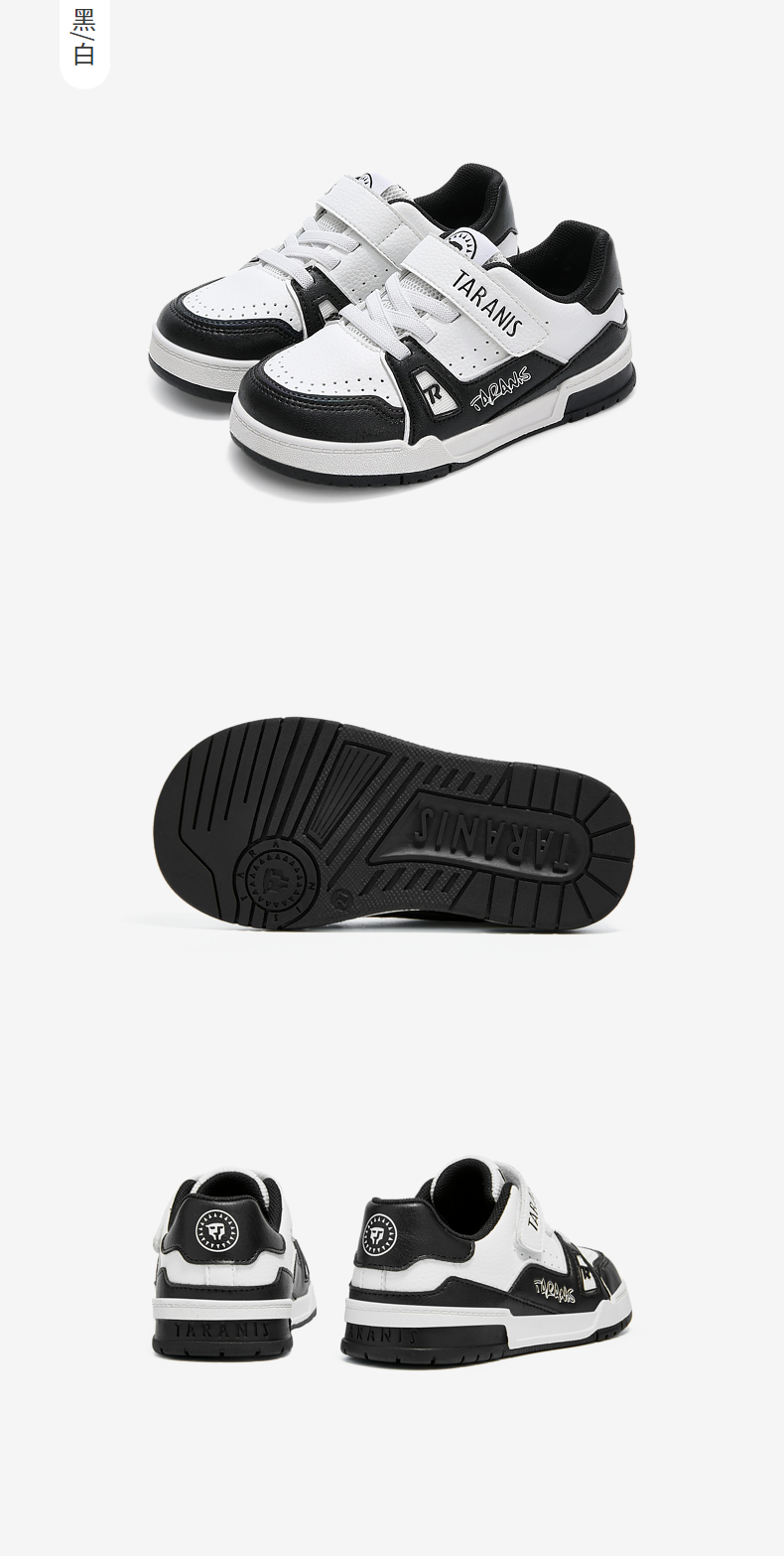 泰兰尼斯春季新款男童低帮板鞋女童软底运动儿童鞋黑白熊猫休闲鞋 T02X5A5934