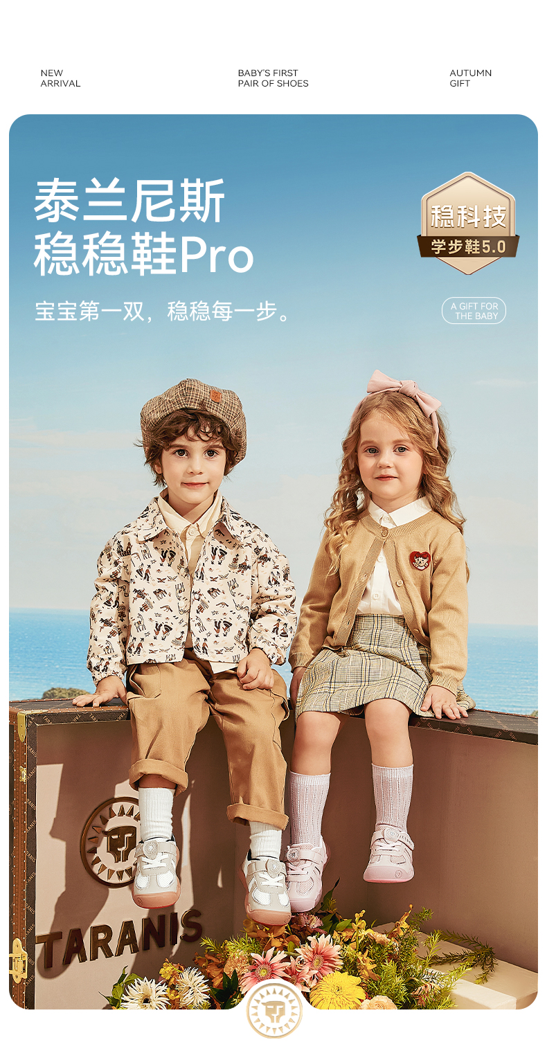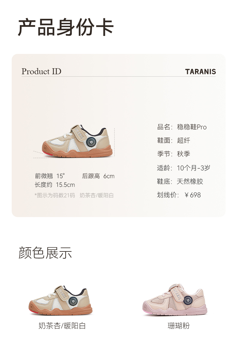 泰兰尼斯稳稳鞋Pro秋季新款童鞋透气学步鞋男宝宝礼盒装机能鞋女 T26T4C5642