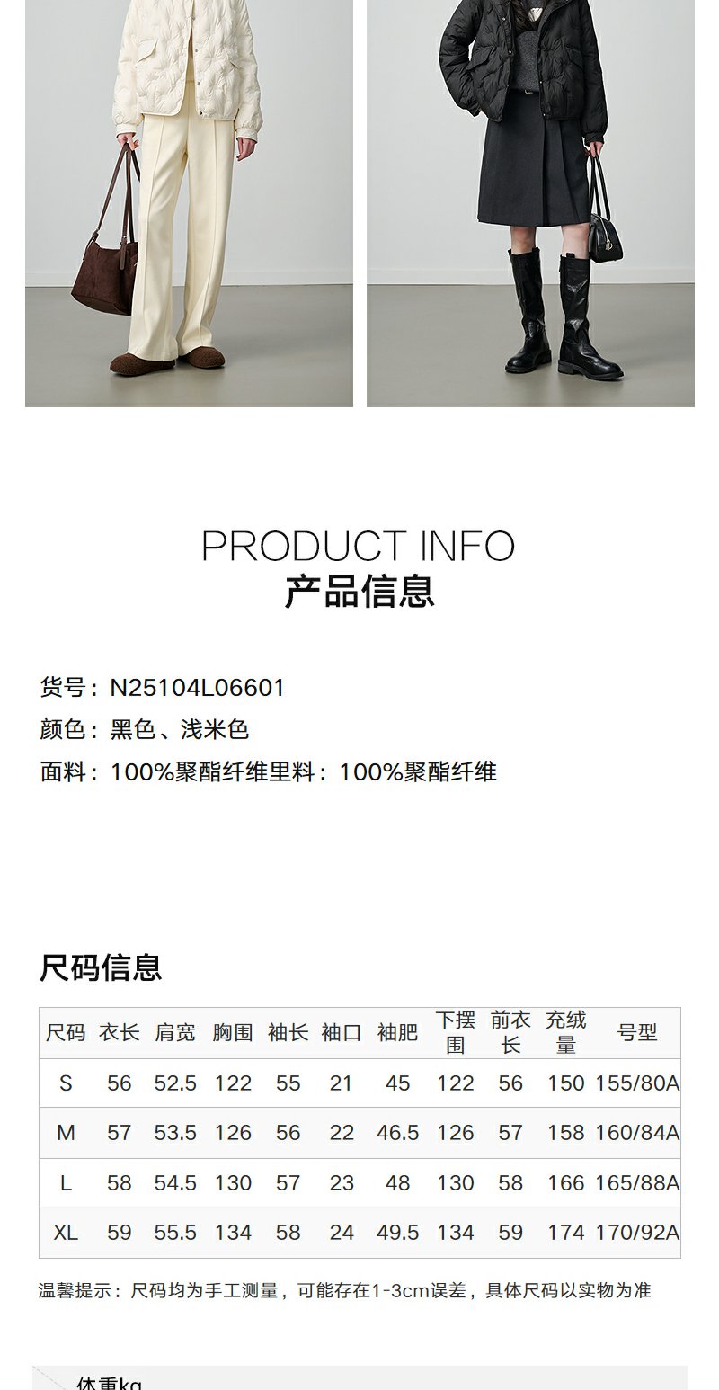 NEELLY纳俪商场同款冬新款轻盈无负担短款羽绒服女显白舒适外套N25104L06601