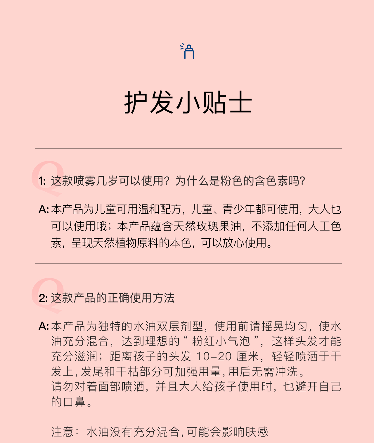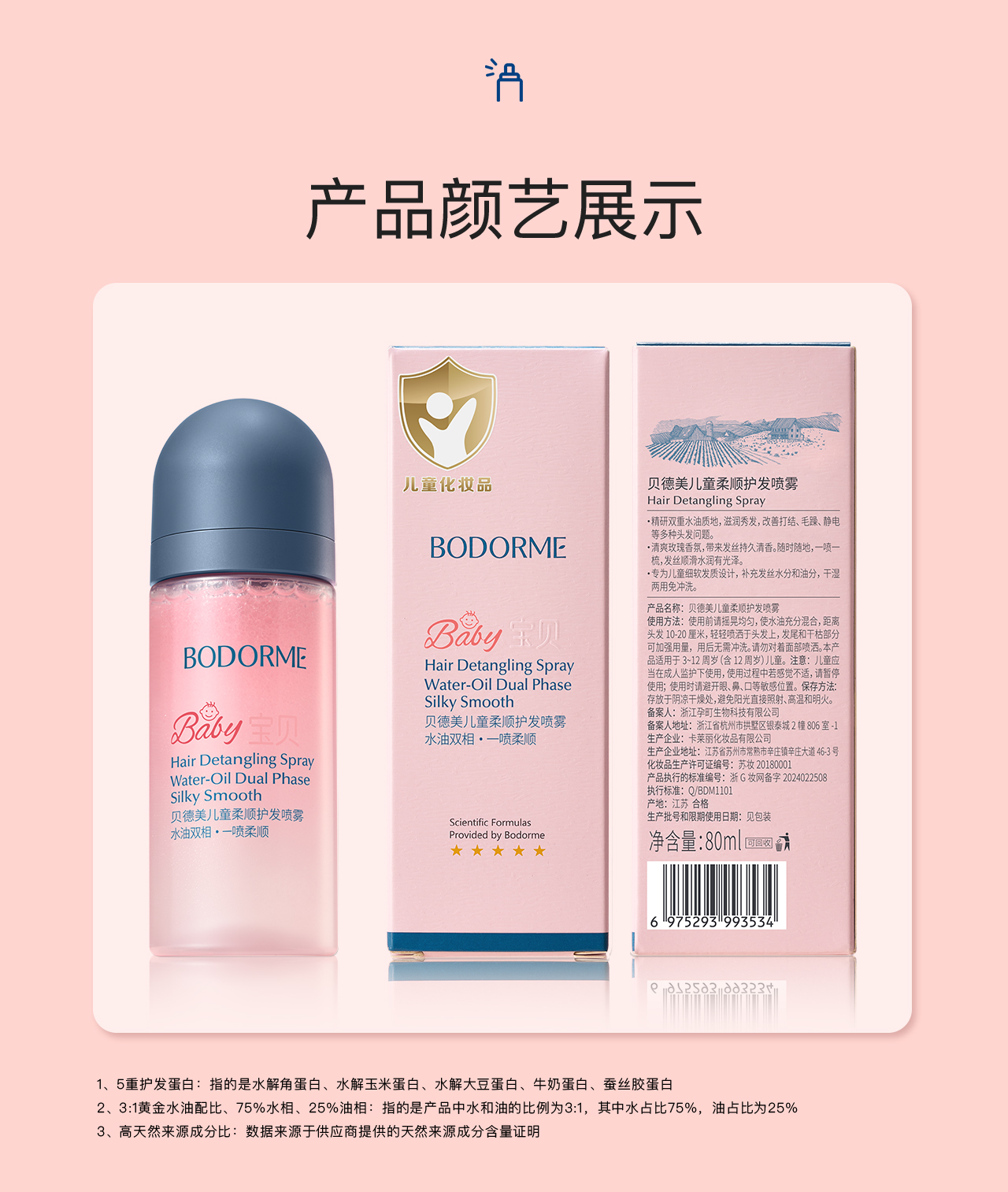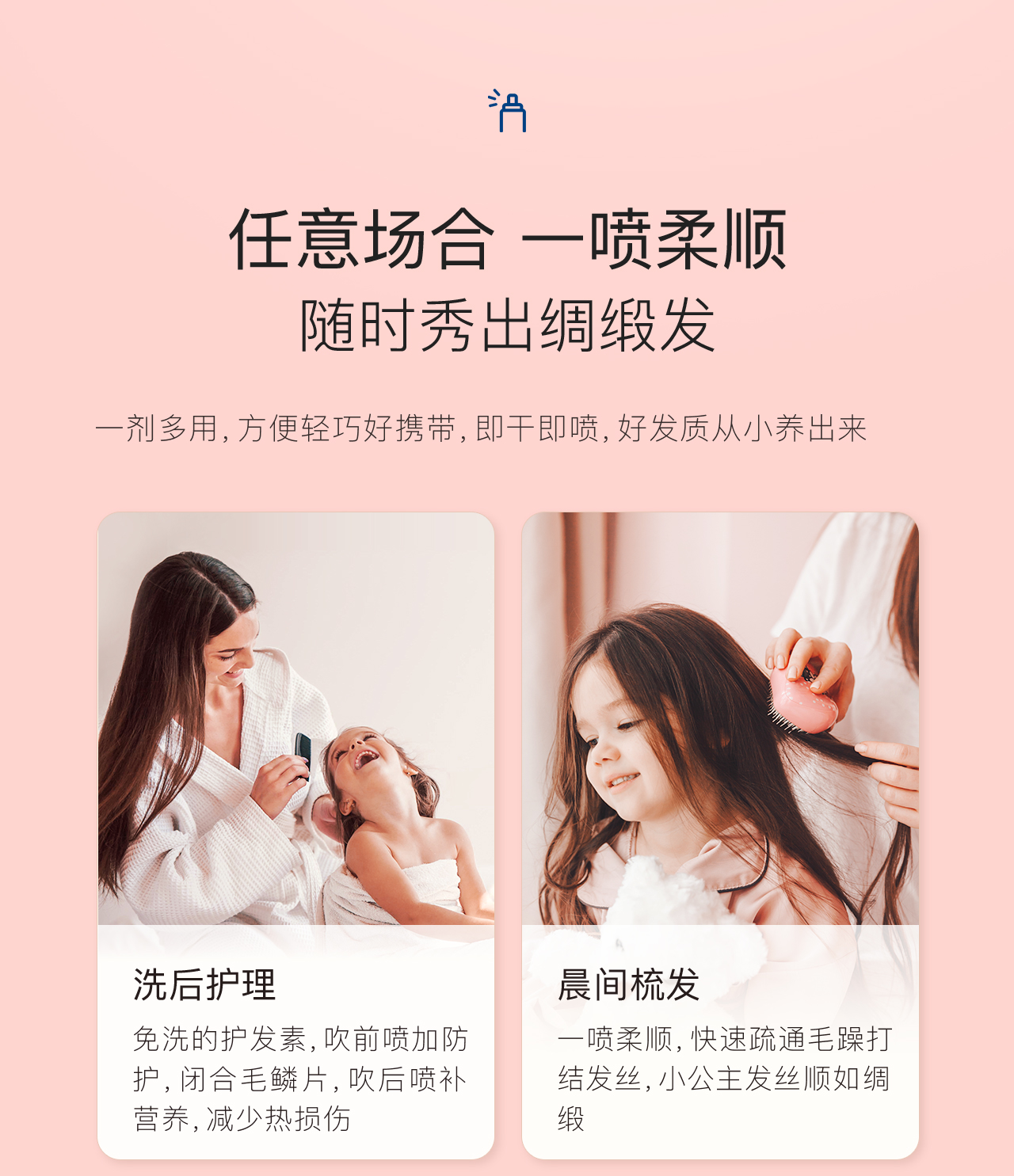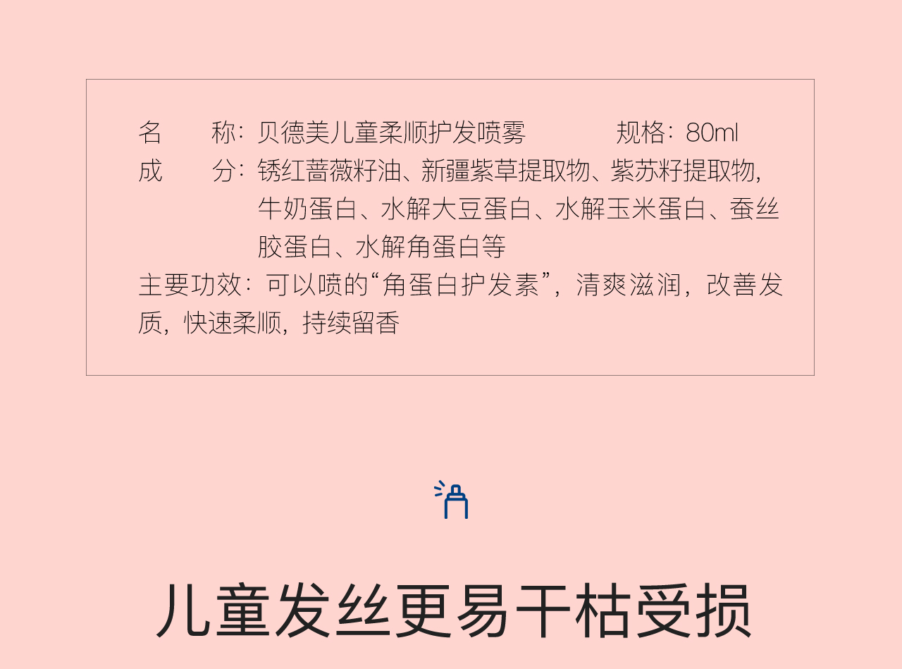【贝德美】儿童宝宝护发喷雾免洗留香清爽润养柔顺发丝玫瑰精油角蛋白喷雾