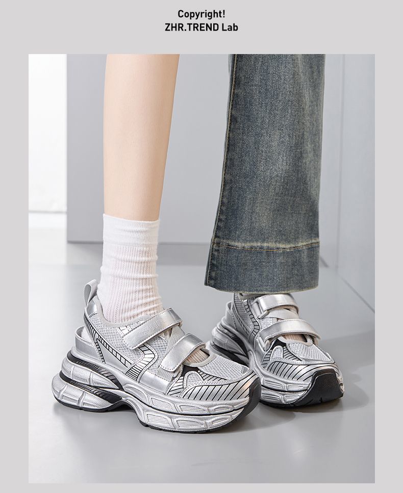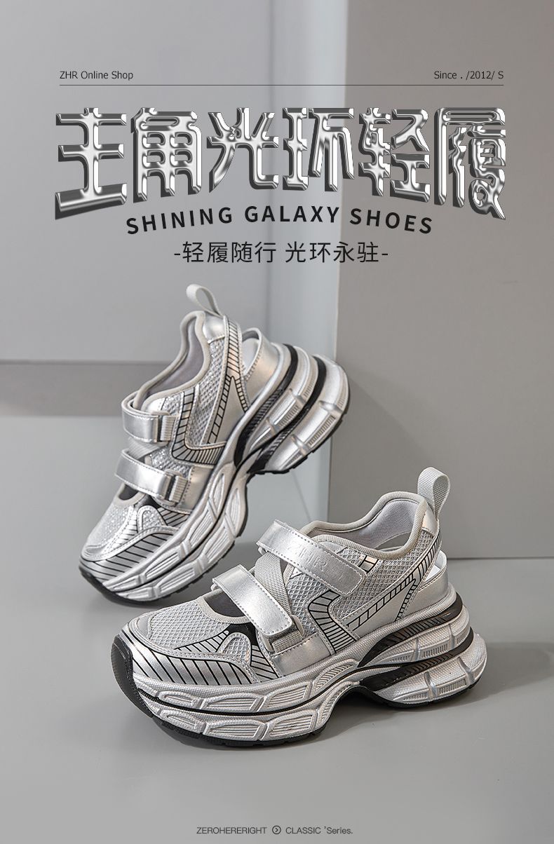 ZHR则则7.8CM透气镂空网面老爹鞋女厚底增高百搭运动凉鞋夏季新款