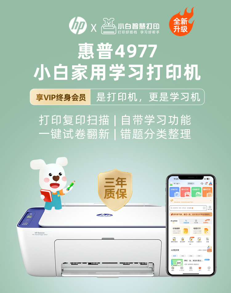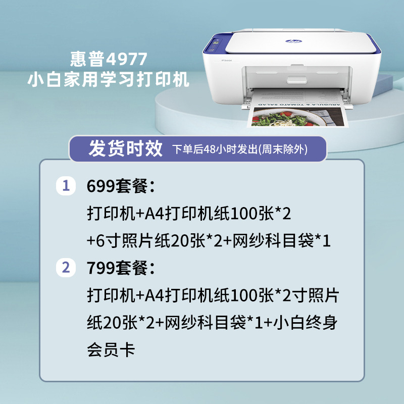 【现货】惠普 4977【新品】小白家用学习打印机+3年上门保修服务 🎁赠A4打印纸+📷相纸