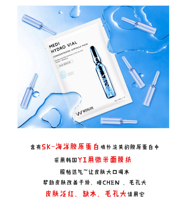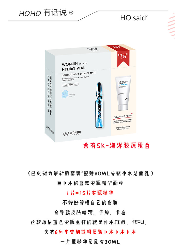 【现货】韩国wonjin元辰透明质酸安瓶精华吊瓶复颜补水面膜林允同款 送洗面奶
