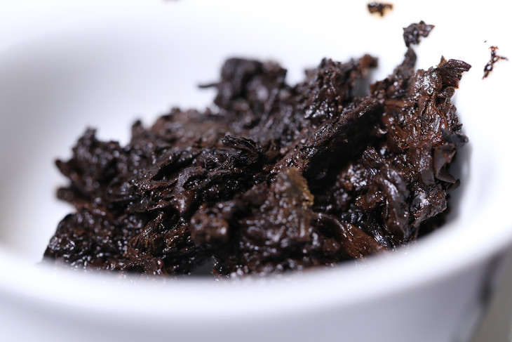 其丰富的析出物,无论泡饮或煮品更显糯滑香甜。由于成团黏连,里面的原料发酵度偏轻,保持了一定的古树生茶鲜活性,在醇味之余,更有回甘生津。