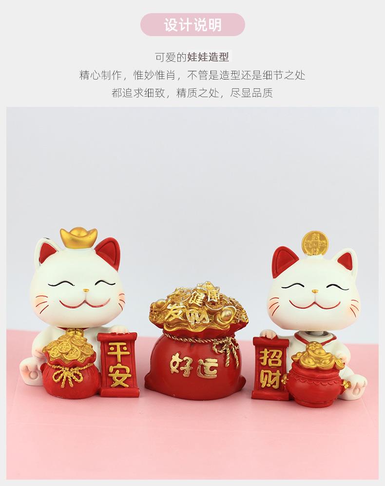 可爱摇头招财猫车载装饰手办公仔树脂工艺家居办公桌摆件开业礼品