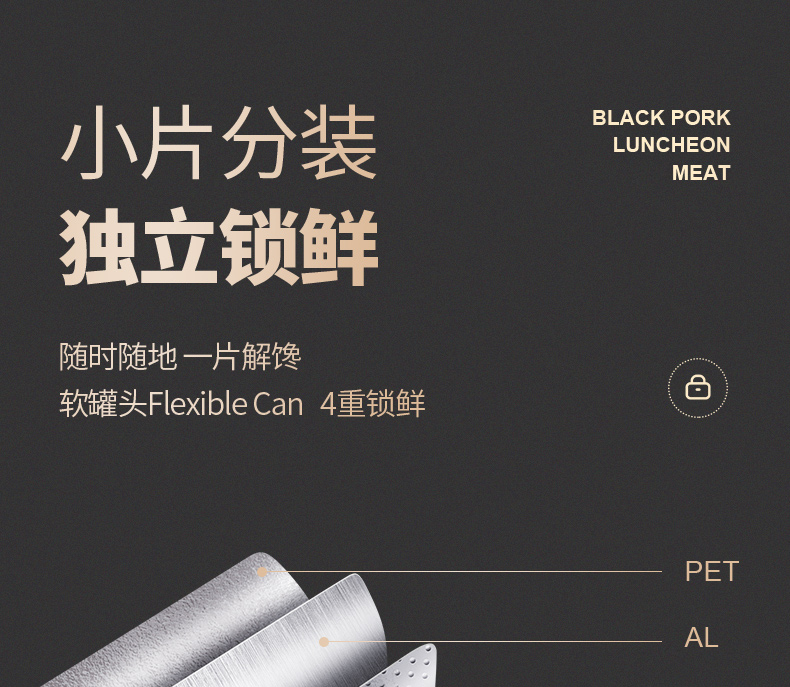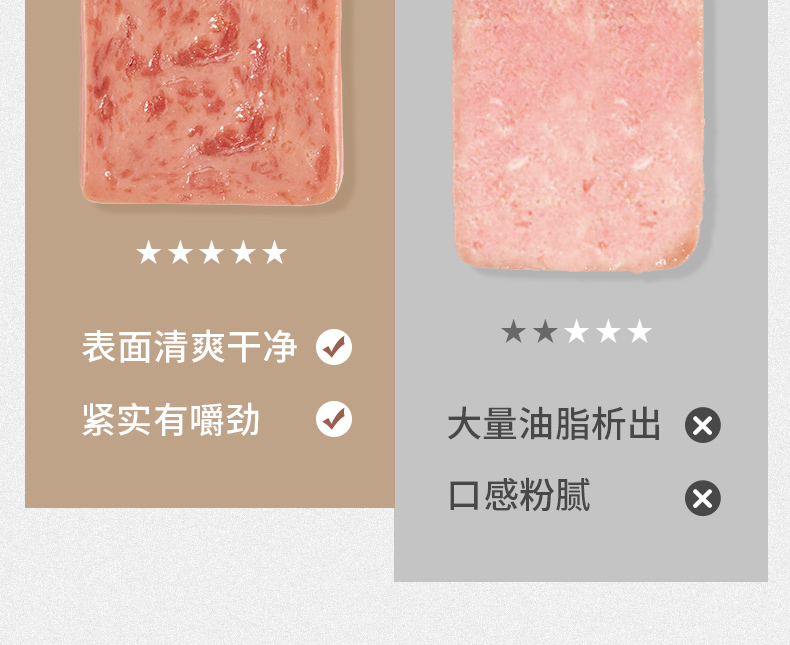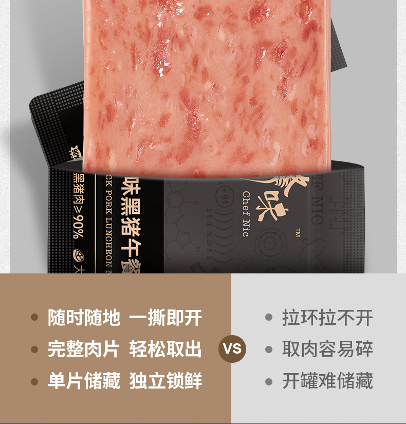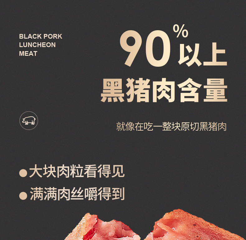 锋味派黑猪午餐肉 90%以上黑猪含量 大块肉粒 无色素味精卡拉胶