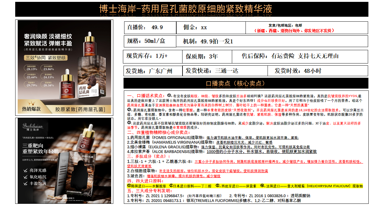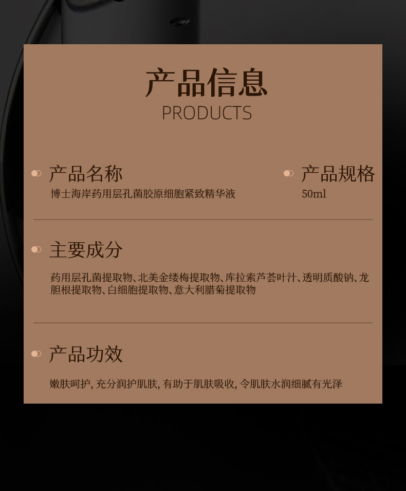 产品名称: 博士海岸-药用层孔菌胶原细胞紧致精华液