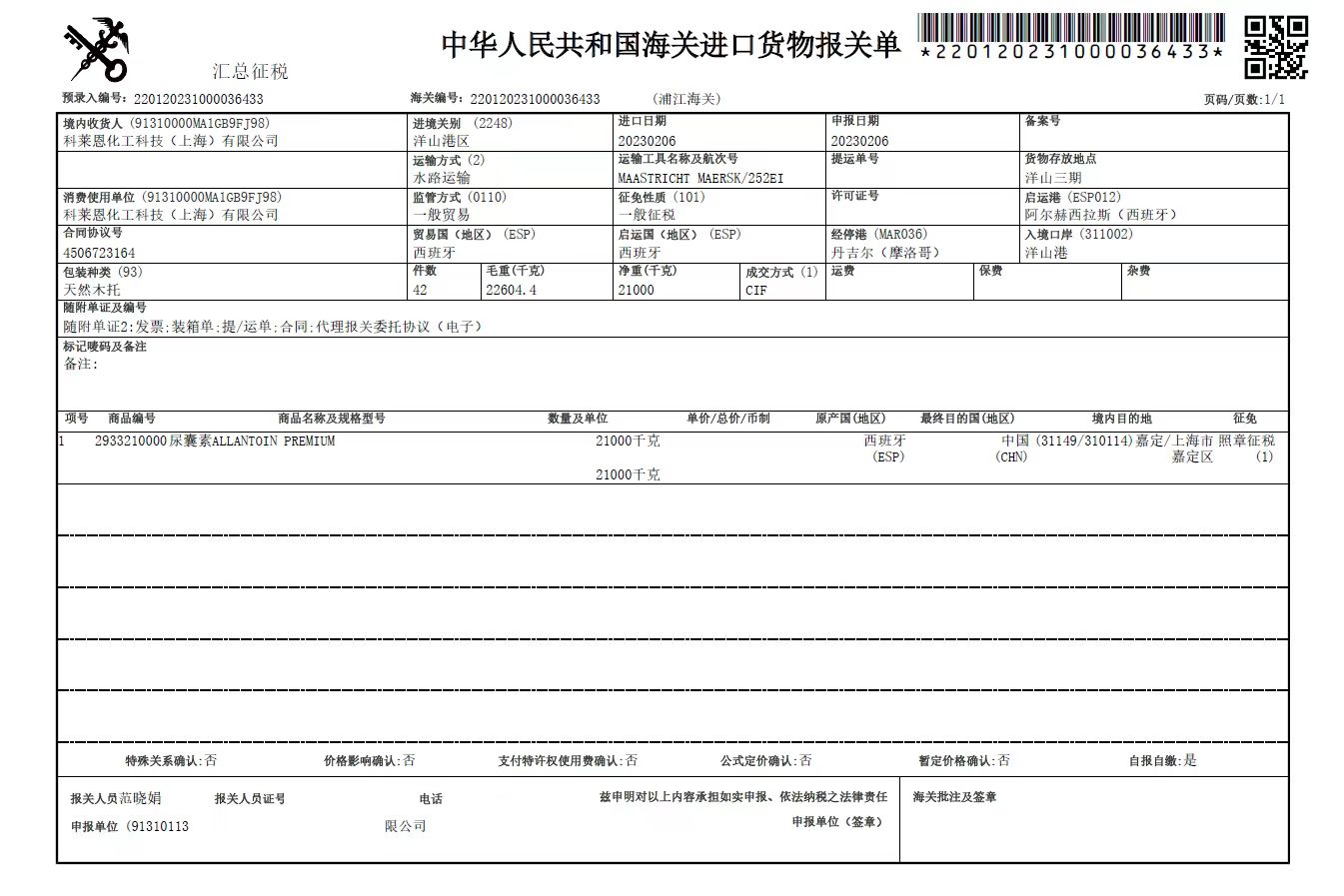 四大进口原料: