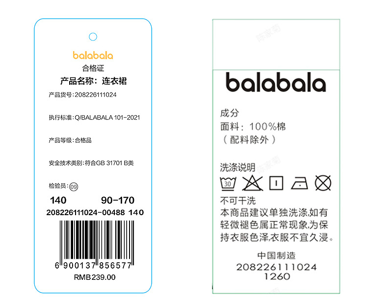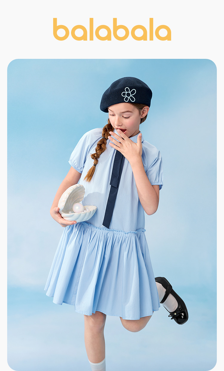 巴拉巴拉女童裙子儿童连衣裙2026新款夏装公主裙学院风甜美泡泡袖