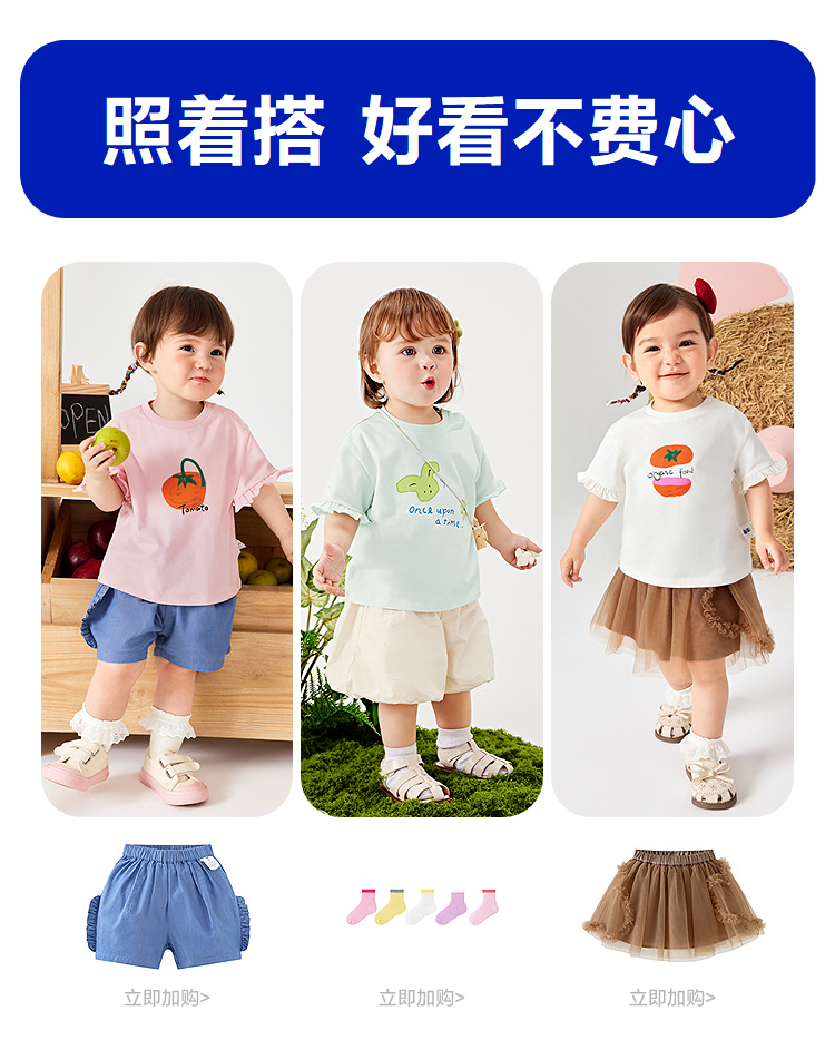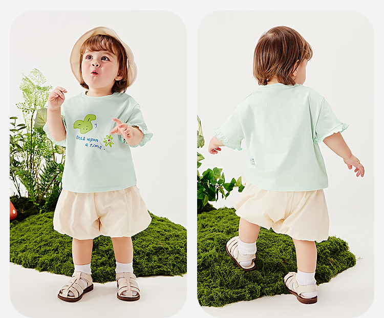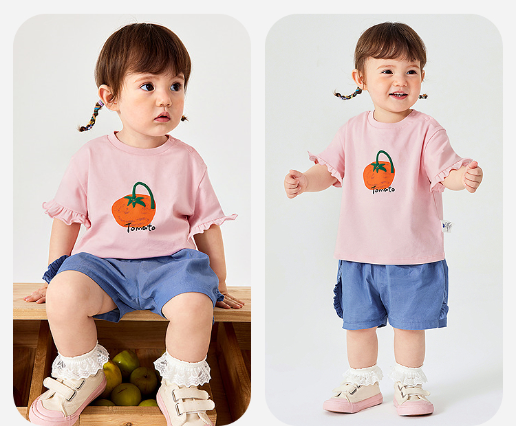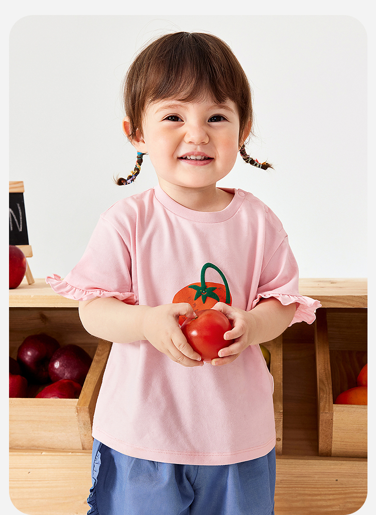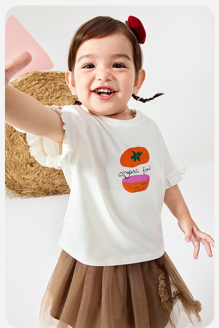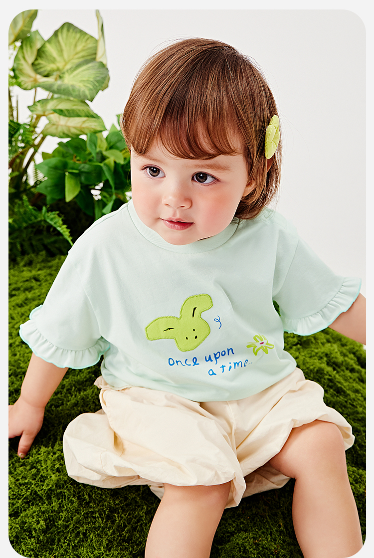 迷你巴拉女宝宝短袖T恤夏装新品甜美荷叶边亲肤婴儿透气打底