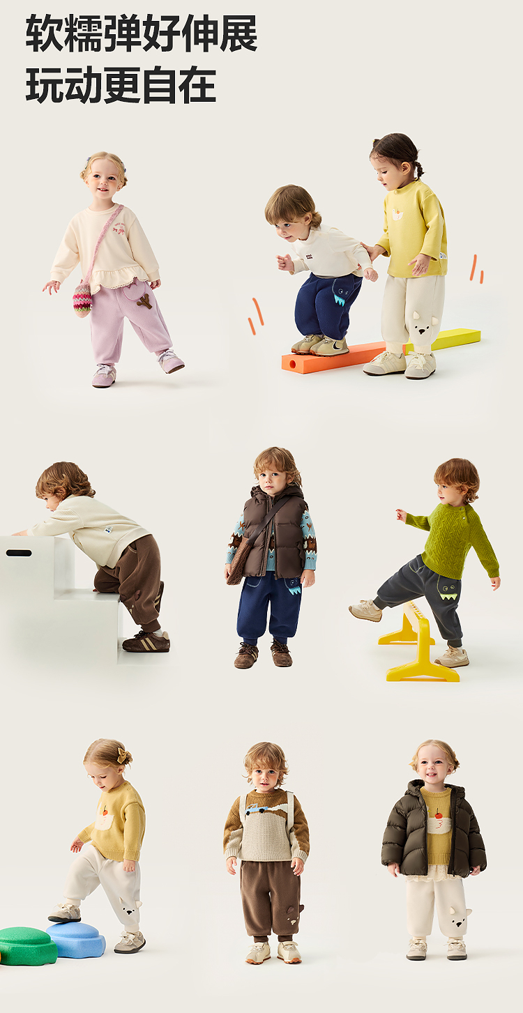 【蹦蹦裤】迷你巴拉男女童裤子2025冬新品保暖双面绒儿童长裤