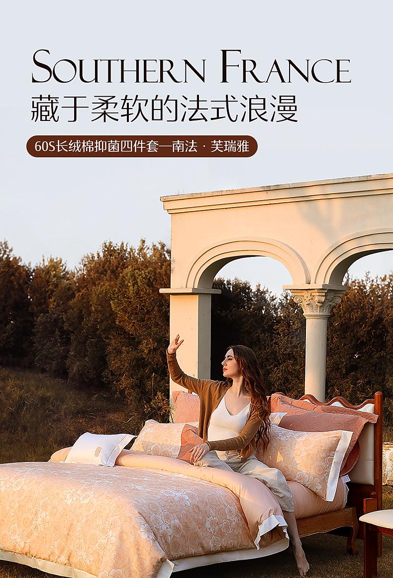 水星家纺南法系列60支长绒棉抑菌四件套透气亲肤套件床上用品严选