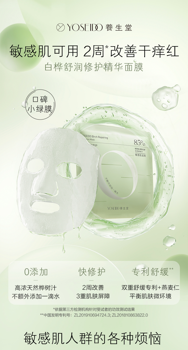 【新品】养生堂白桦舒润修护精华面膜 补水保湿天然无水