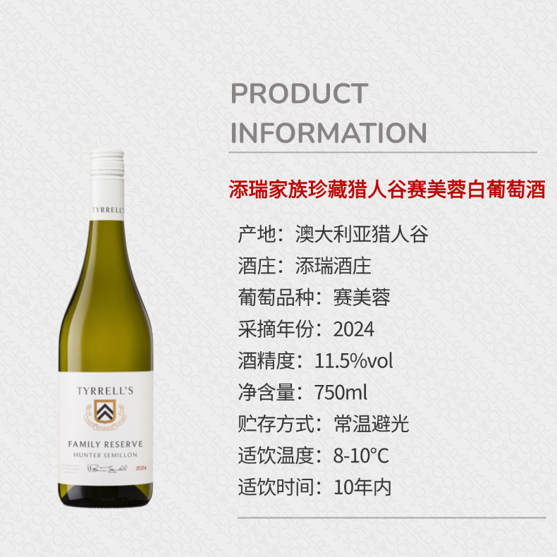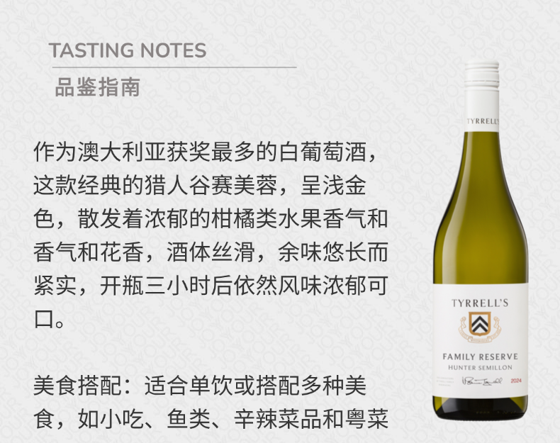 添瑞家族珍藏猎人谷赛美蓉白葡萄酒