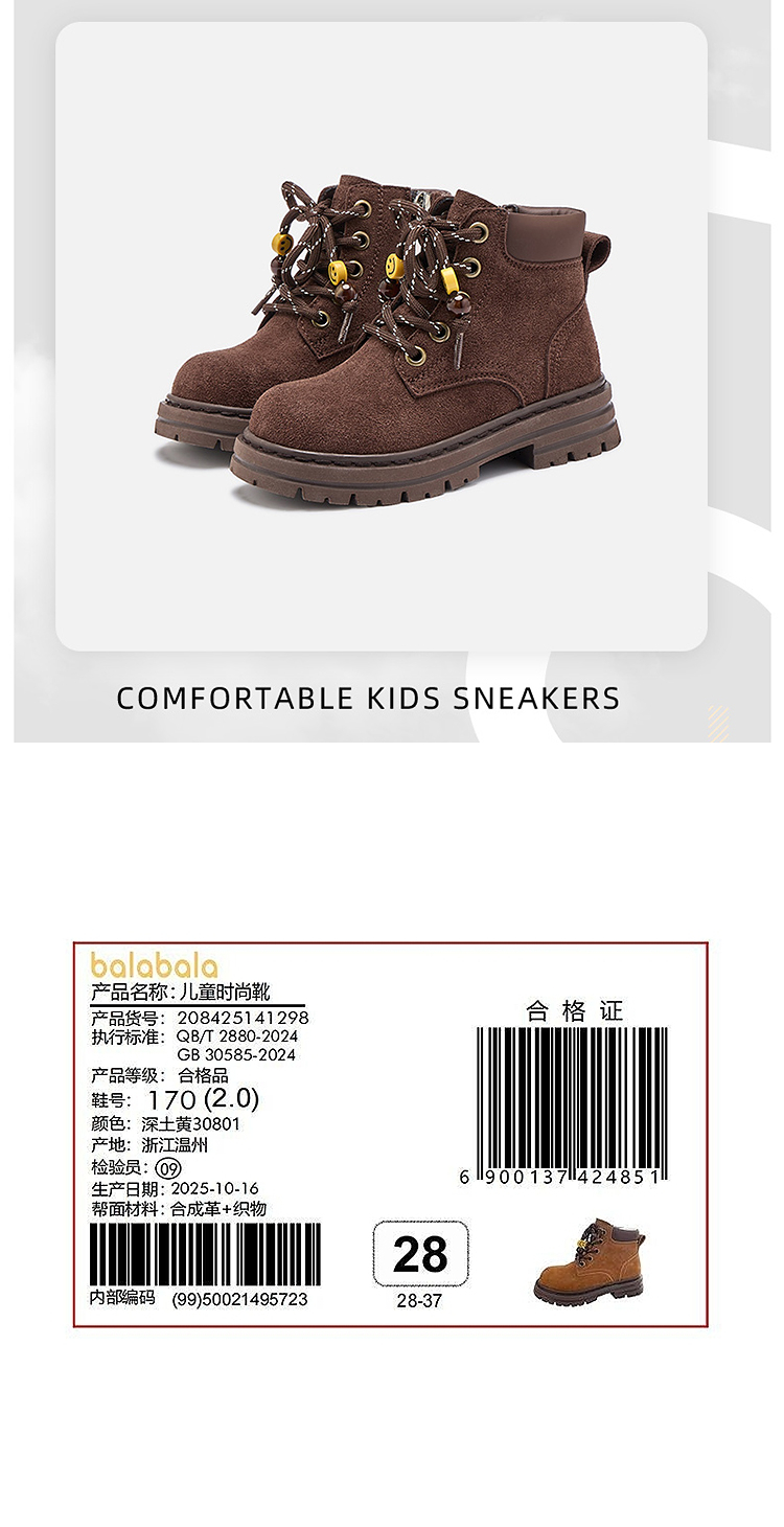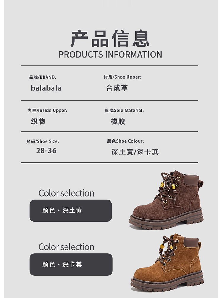巴拉巴拉童鞋儿童时尚靴男女童2025年新款秋冬休闲鞋子时尚洋气